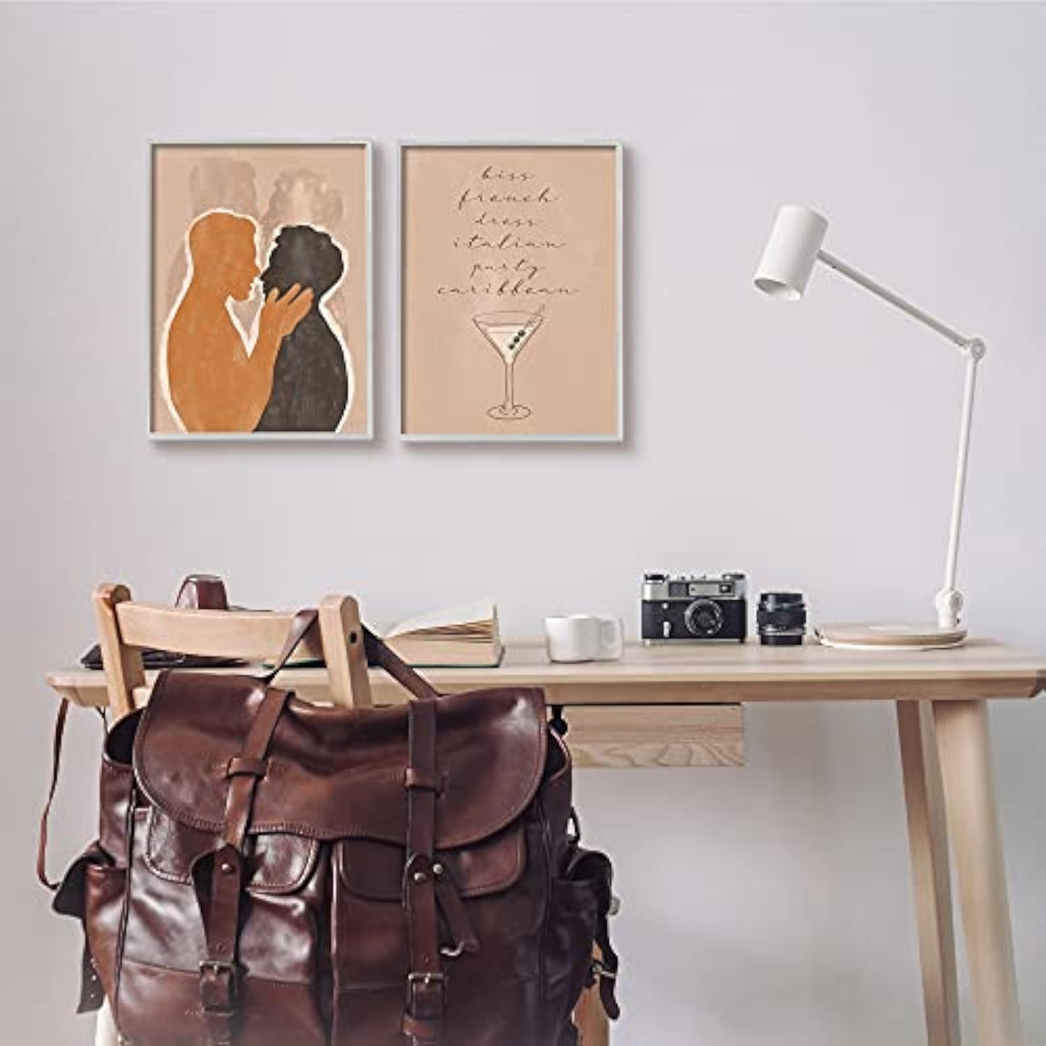 Stupell Industries Kiss French Party Caribbean Phrase Male Couple Embrace, Designed by Birch&Ink Gray Framed Wall Art, 2pc, Each 11 x 14, Brown