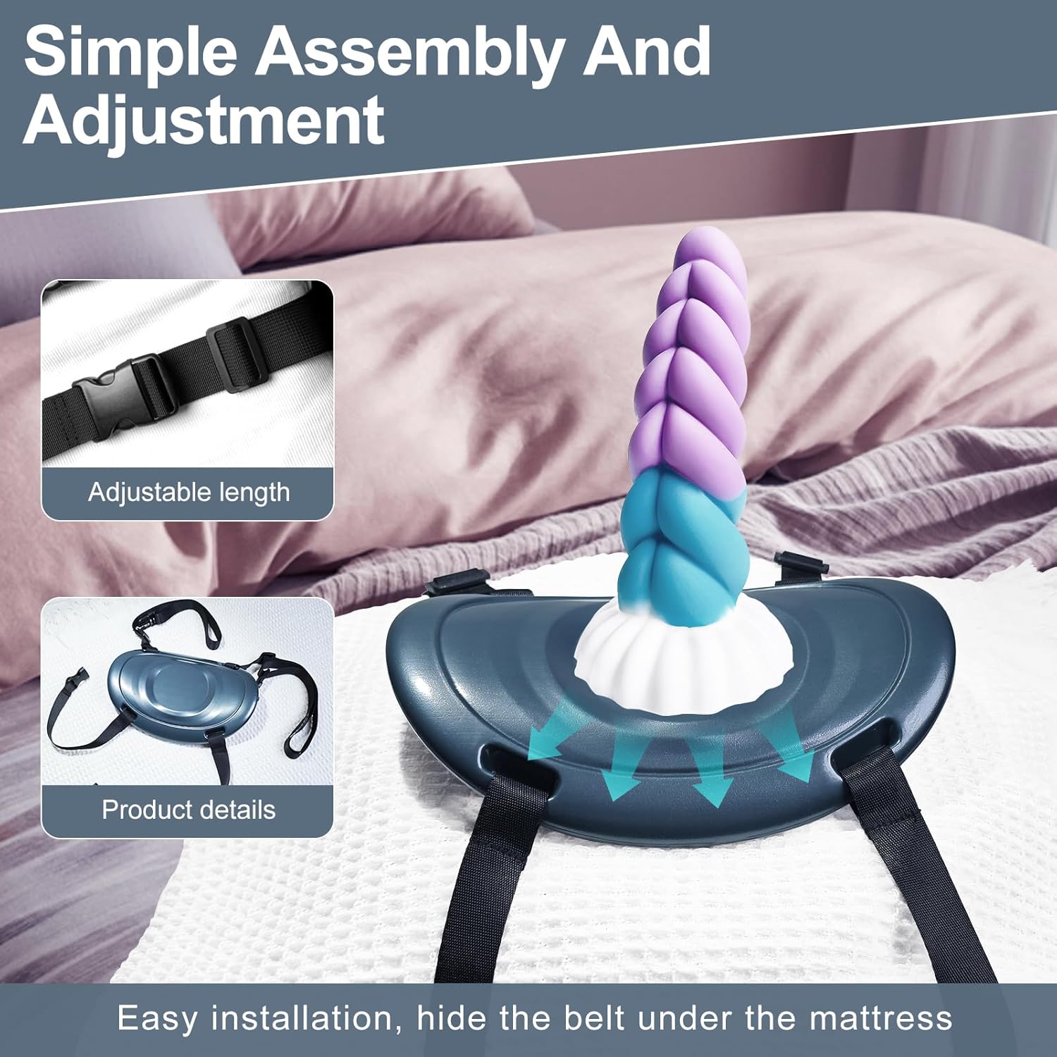 Versatile Dildo Mount Platform: This sex saddle features a 3.15" pommel-shaped platform designed to securely hold suction cup dildos of various sizes. With 40" adjustable straps, it can be fastened to pillows, towels, or bolsters, providing a stable, hands-free experience. The contoured design ensures comfort without pressure on your legs.