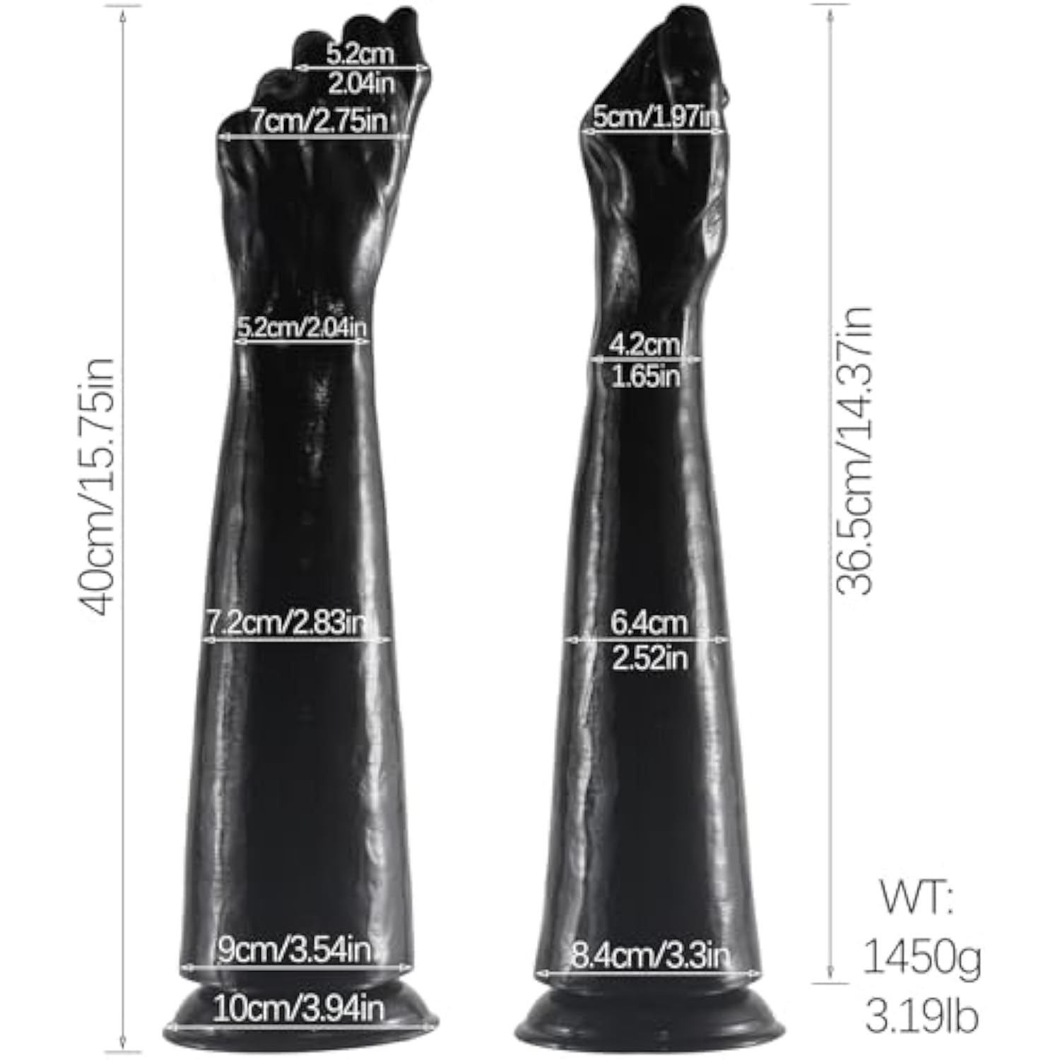 Super Huge Realistic Hand Dildo Sex Toys For Women Men - Black 15.75" Real Fist Dildos With Strong Suction Cup, Long Thick Arm-Shaped Penis For G Spot Stimulation Anal Plug