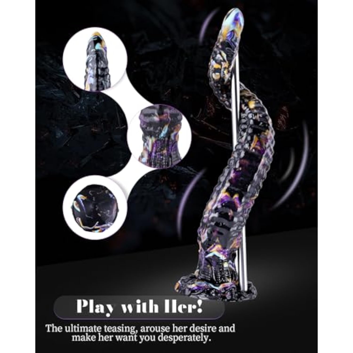 Super Long Anal Plug Dildo, Flexible Silicone Dildo, Sex Toy With Powerful Suction Cup For Men Women And Couple, Black