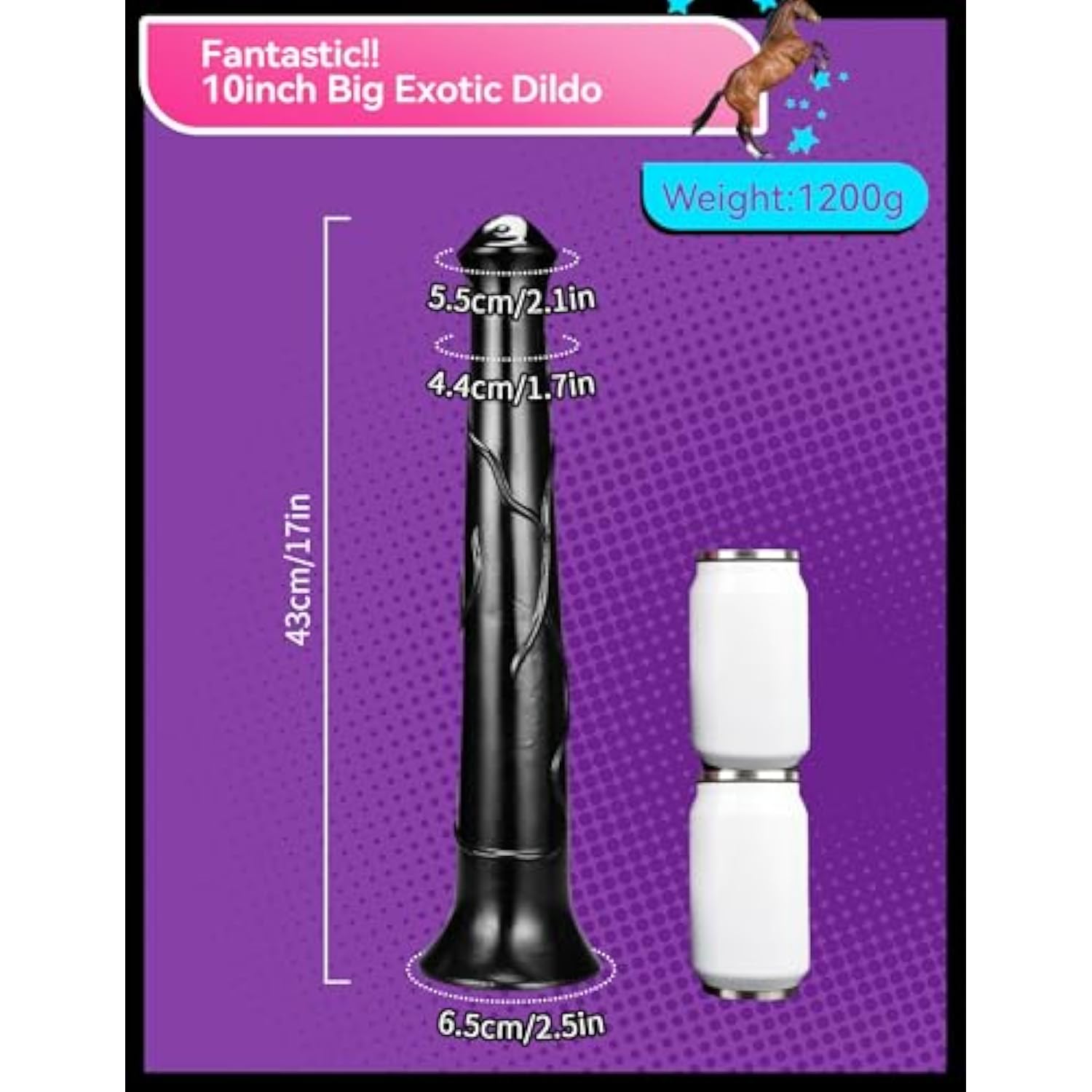 Super Long Horse Dildo 17Inch Huge Big Black Cock Thick Animal Dildo Giant Anal Plug Adult Sex Toys For Men And Couples (Black)