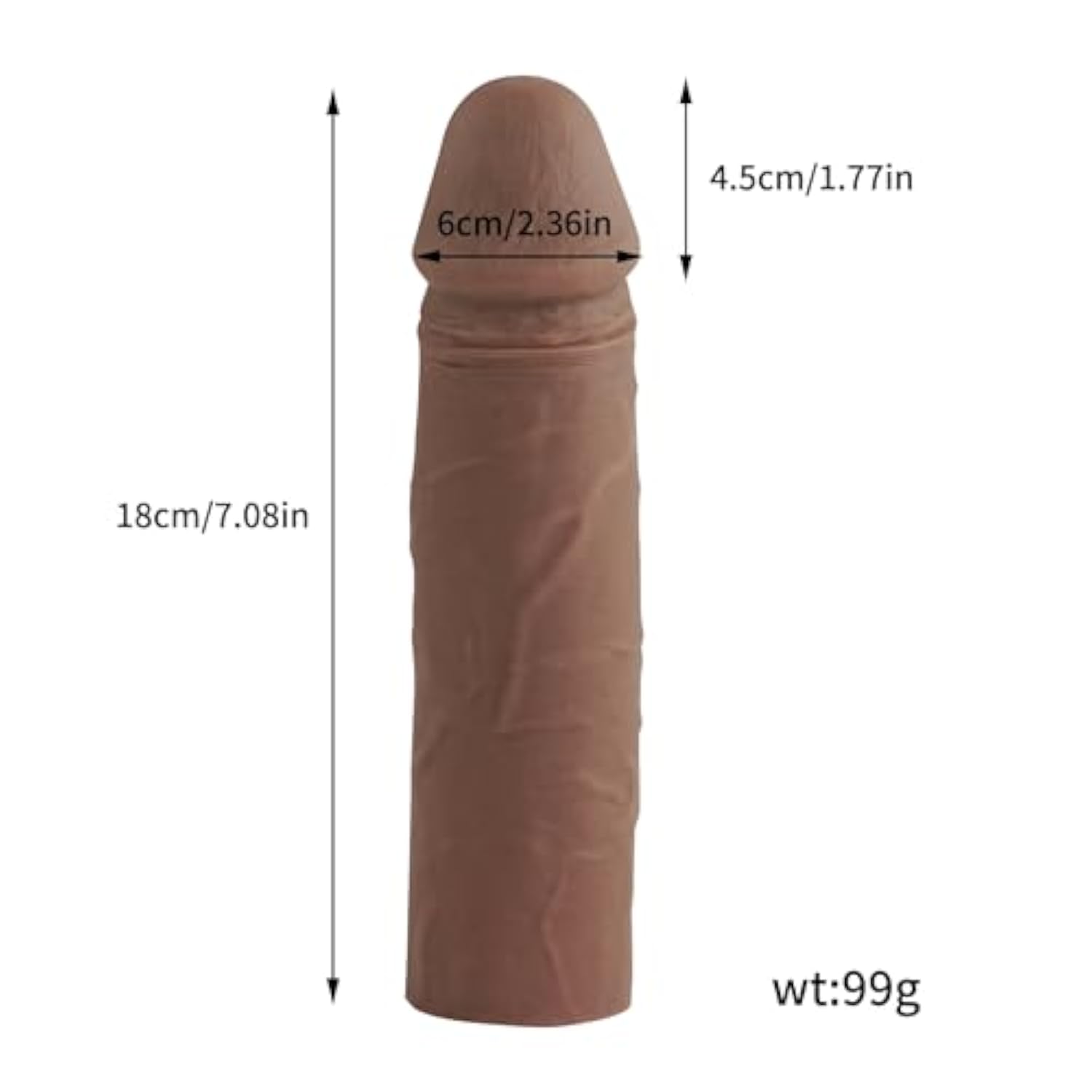 Super Stretchy Silicone Penis Sleeve Extender, Reusable Real Textured Penis Cock Enlarger,Delay Ejaculation For Men Gay Extension Sex Toy, Brown