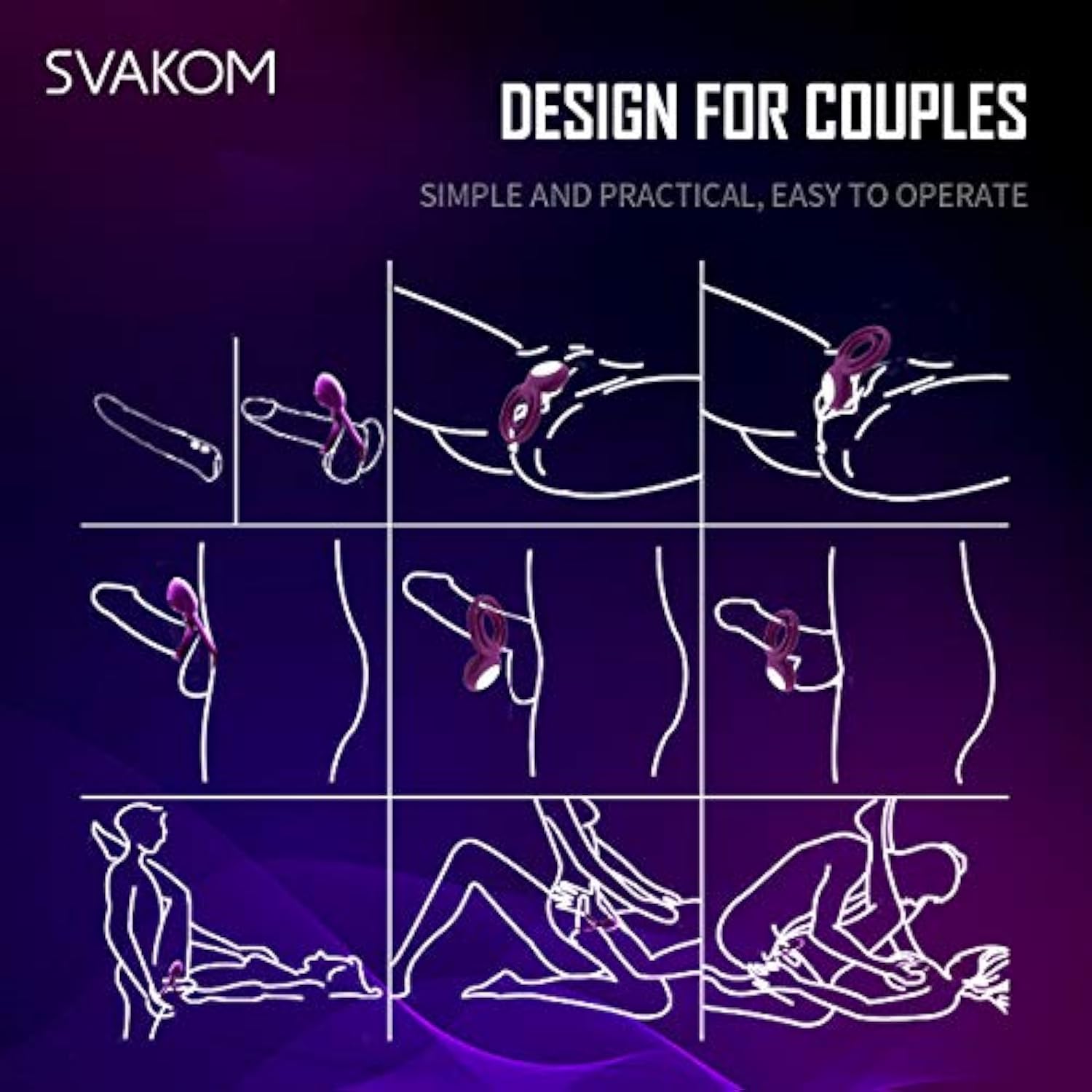 SVAKOM Couples Ring Vibrating Dual Penis Rings Male Adult Sensory Toys Clitoral Vibrator G-Spot Stimulators Waterproof, Rechargeable.