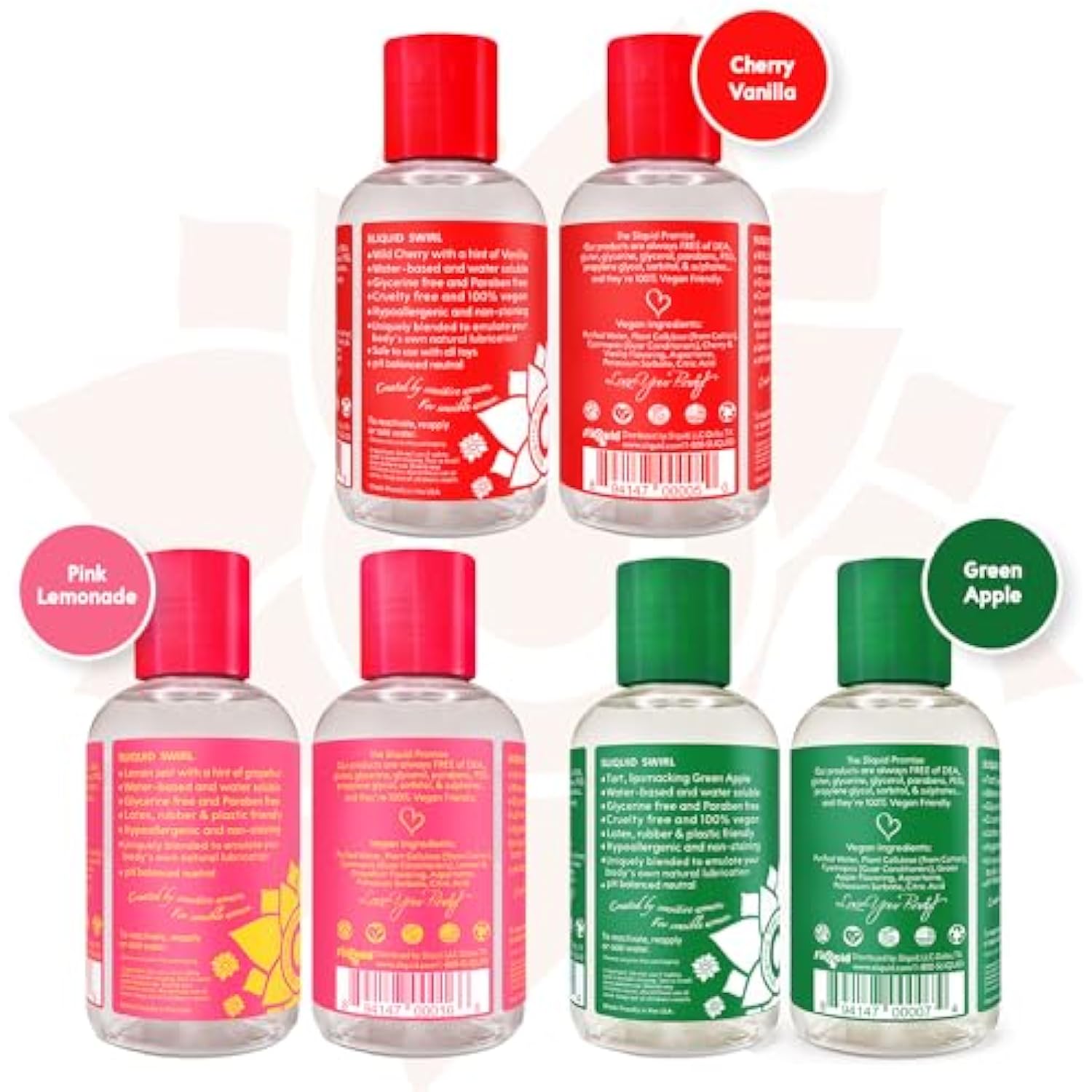 Swirl Flavored Lube Variety Pack - Cherry Vanilla, Green Apple Tart, And Pink Lemonade Water-Based Lube, Gift Ideas For Women/Men/Couples, Flavored Lubricant, 4.2 Oz Ea (3 Piece Set)