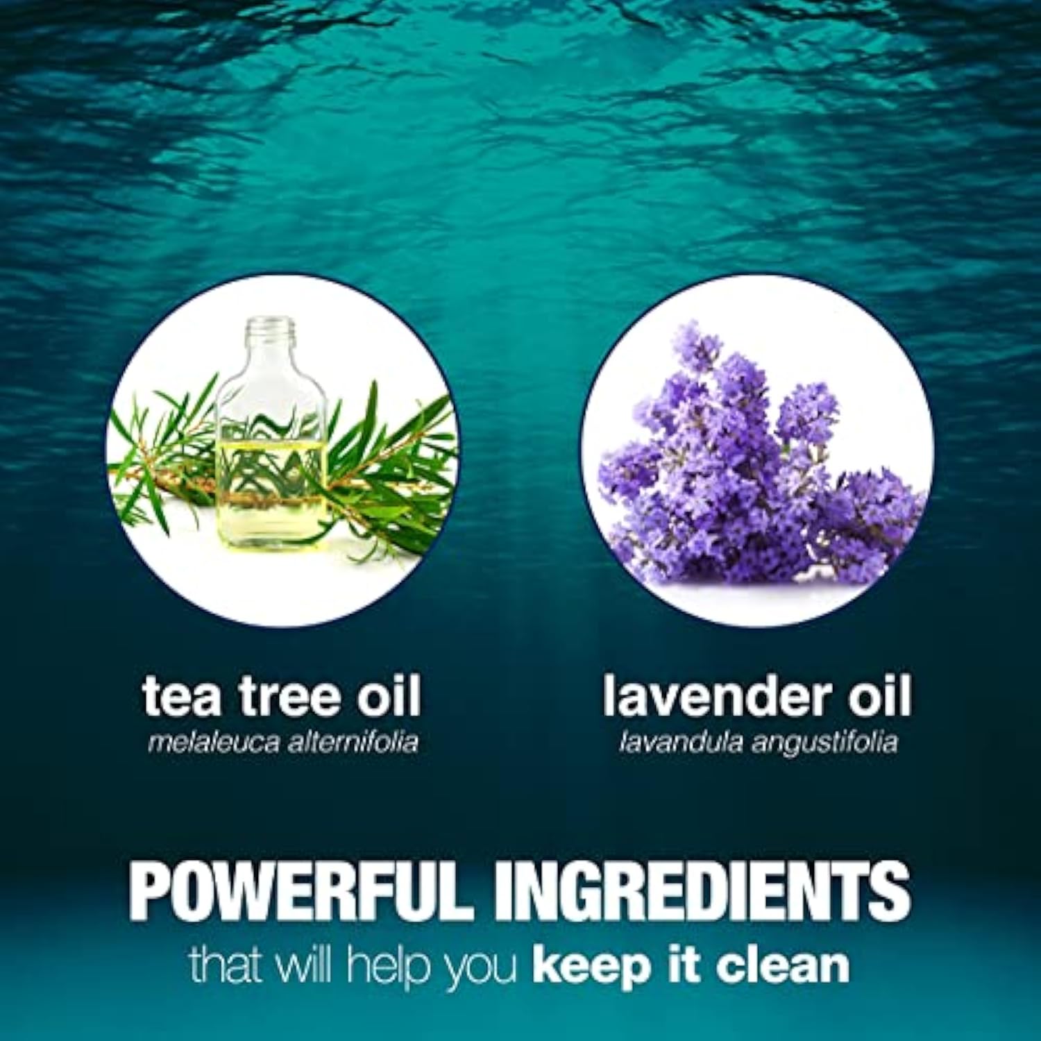 | ? ULTIMATE IN CLEANSING: No residue | | ? QUALITY INGREDIENTS: Tea Tree Oil-based~ Won't dry skin! | | ? GREAT SCENT: Pleasant lavender scent | | ? MADE IN THE USA | | ? NO HARSH CHEMICALS: Free of Parabens | |