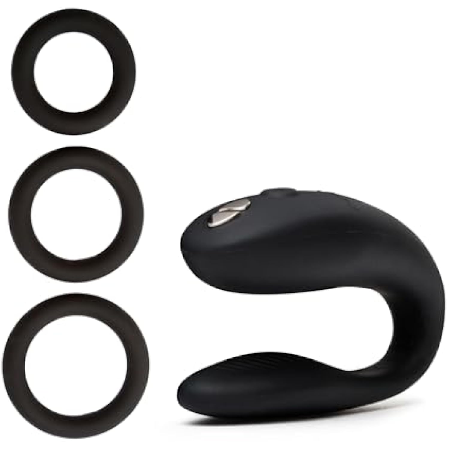 Sync Go Black C-Shape Couples Vibrator & Lovehoney Get Hard Set Of 3 Cock Rings - Couples Sex Toys Bundle