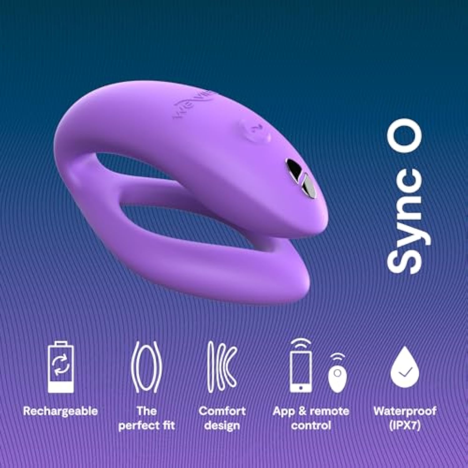 Sync O Purple Remote Control C-Shaped Couples Vibrator & Bond Adjustable Wearable Vibrating Cock Ring - App Controlled Couples Sex Toys Bundle