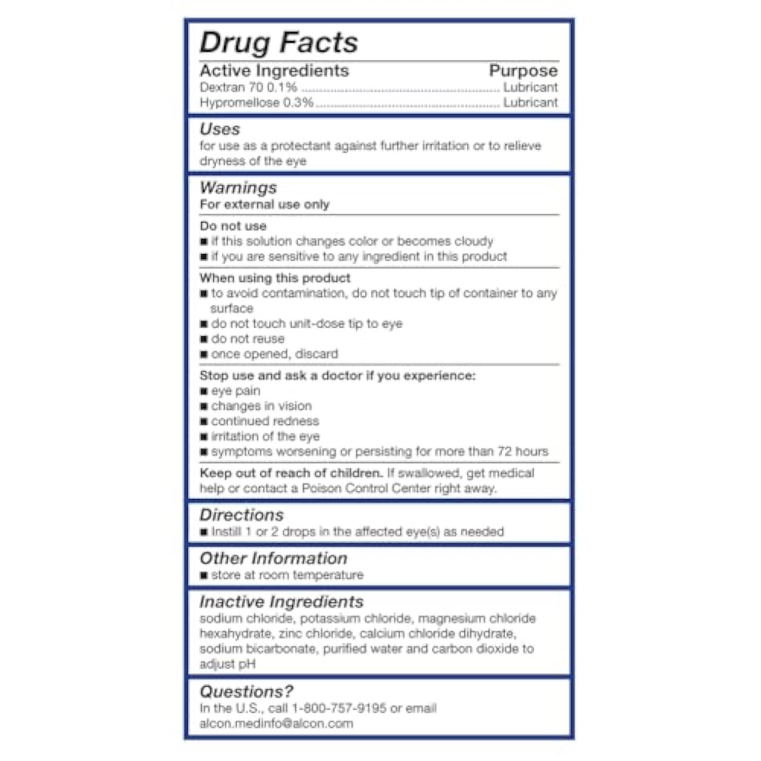 Tears Lubricant Eye Drops By Alcon, 28 Single-Use Vials
