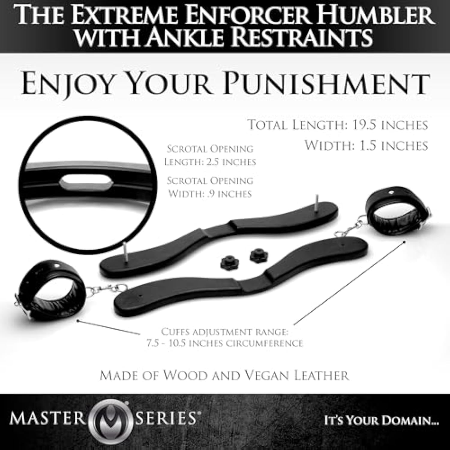 Get Your Man On His Knees: This Humbler Prevents Your Poor Sub From Getting Off His Knees! Have Him On The Ground With His Ass And Balls Exposed For You To Play With And Tease – Slap, Tickle, And Rub His Most Vulnerable Bits Until He Cries For Mercy! | | Adjustable Ankle Restraints: Included With This Humbler Is A Set Of Padded Ankle Cuffs Designed To Be Locked So Your Plaything Has No Chance Of Escaping His Punishment. The Cuffs Are Comfortable Padded And Mold To The Body Of The Wearer To Prevent Discomfort During Long Sessions And Scenes. Can Also Be Removed If You Think The Humbler Is Enough Of A Punishment. | | Humbler Specifications: Crafted From Durable Wood, Metal, And Plastic For Sturdiness And Longevity. Ergonomi