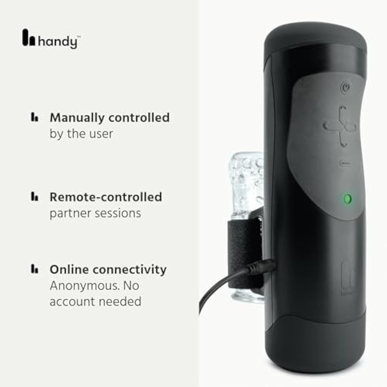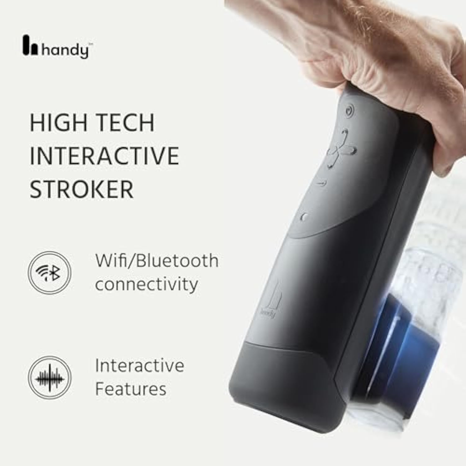 | The HANDY Masturbator- A high-performance automatic male masturbator with Wifi/Bluetooth connectivity, customizable stroke length area, and rhythm. | | Interactive sex toy for men - This male stroker can be controlled by the user, remotely by a partner, or by adult video—sync with the Handyfeeling app. | | Allows extra customization - Powered by a brushless motor, it offers maximum pleasure with up to 600 strokes/min. Customize your sensations with the masturbation sleeve of your choice. | | The Handy box inclusions - This men’s sex toy comes with a power supply and cable, a TrueGrip Velcro band, and a TrueGrip Original sleeve. | | Ohdoki - Our male masturbator, The HANDY, and female vibrator, Oh!, are high-quality sex toys built to deliver the most immersive and innovative sensual experiences for both men and women. | |