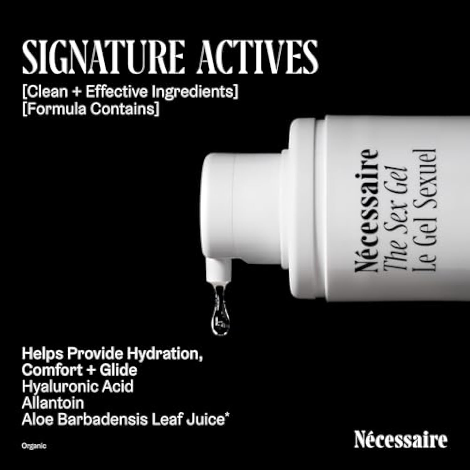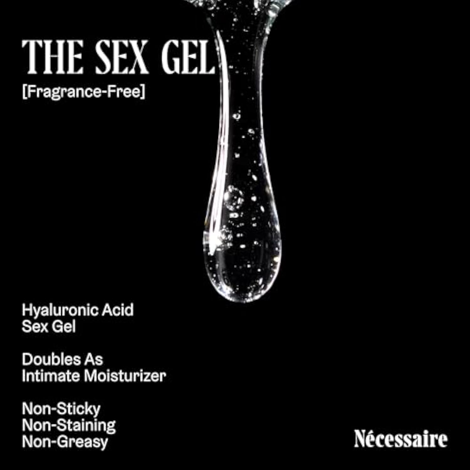 The Sex Gel. Water-Based Personal Lubricant. Hyaluronic Acid + Lactic Acid. No Fragrance Added. Non-Staining. Safe For Toys + Condoms. 50 Ml / 1.7 Fl Oz.