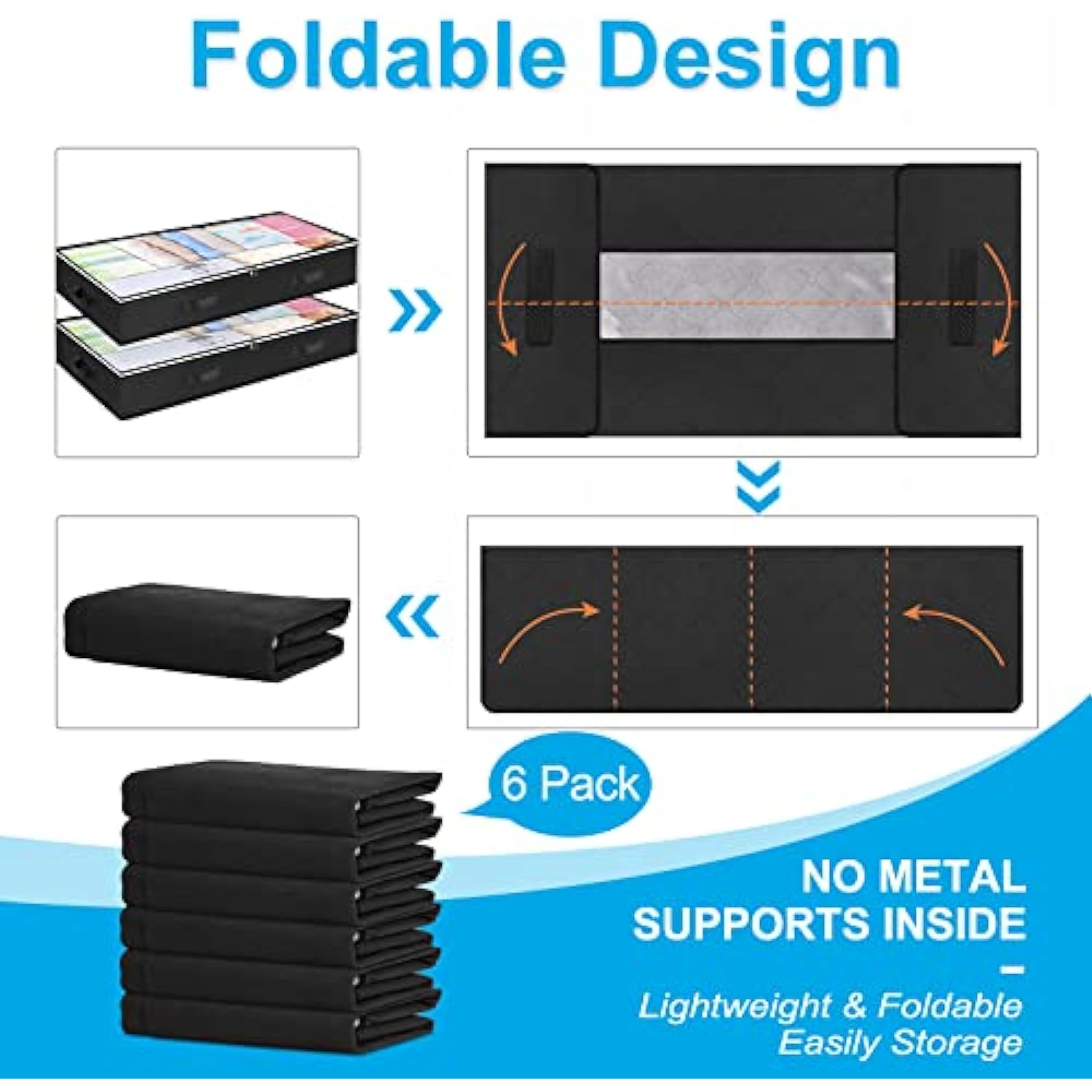 - Premium Material: The underbed storage containers are made from high-quality, odorless, three-ply composite non-woven thick fabric, durable and breathable, keep clothing fresh from long-term storage. NO cardboard NOR metal supports insert, arrive to you collapsed and packaged in a vacuum storage bag.