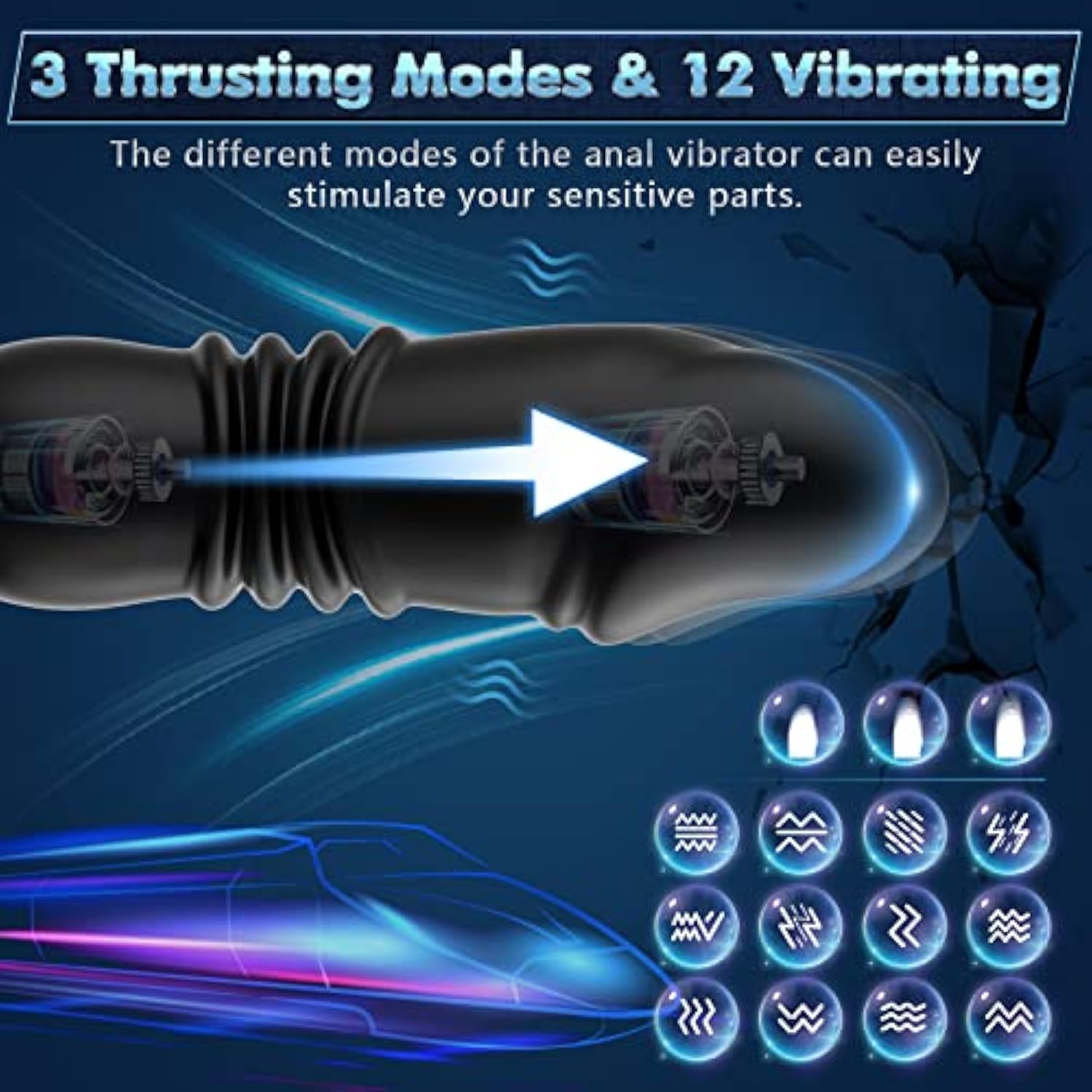 Thrusting Anal Vibrator Prostate Massager - Dual Cock Ring Anal Toy Butt Plug With 3 Thrust & 12 Vibration Modes, Remote Control Anal Male Adult Sex Toys P Sport Massager For Men Couples Waterproof