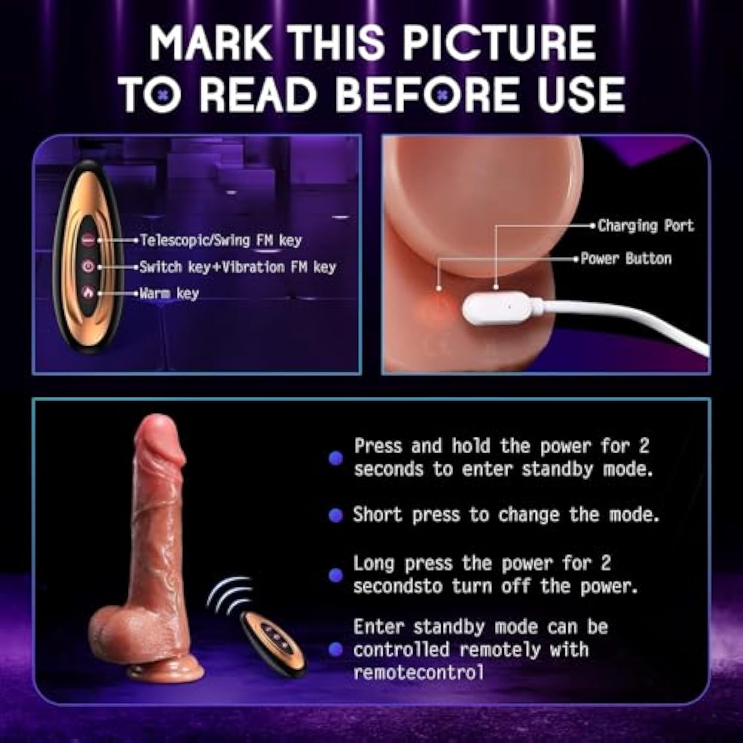 | Realistic Design: Our Multi-Functional Realistic Dildo Has A Natural-Shaped Glans With A Well-Defined Tip And Soft, Veined Shaft Specially Designed To Resemble A Real One. This Realistic Dildo Also Has A 3-In-1 Mode Of Thrusting, Vibrating, And Heating Which Provides A Feeling Of Natural Sexual Intercourse And Strong Clitoral Stimulation. | | Powerful Thrusting And Vibration: At 21Cm Total Length,15 Cm Insertion Length, And 4 Cm Circumference, This Dildo Is Ideal For Both Beginners And Experienced. The Dildo Vibrator'S Motor Features 8 Powerful Thrusting Modes And 10 Vibrating Patterns, Giving You A Variety Of Sensations To Explore. | | Pleasure With Remote Control: Our Realistic Dildo Comes With A Remote Control, Enabling Seamless Toggling Between Thrusting And Vibrating Modes. With The Ability To Operate From A Distance, This Remote Allows You Or Your Partner To Take Control Making Every Moment Filled With Excitement And Ecstasy. | | Strong Suction Cup Base: Enjoy Hands-Free Pleasure With Our Harness-Compatible Dildo’S Strong Suction Cup Base, Which Sticks To Surfaces Like Your Headboard, Shower Wall, Or Chair. This Vibrating Dildo Fits Securely Onto Any Smooth Surface Such As Hard Floors Or Tile Walls, Bathrooms, Kitchens, Bedrooms, So It Is Super Easy To Play Freely And Leave Your Hands Free To Add Other Aspects To Your Experience. | | Discreet Vibrator: This Realistic Dildo Comes With Discreet Packaging To Protect Your Privacy. The Motor Is Specifi