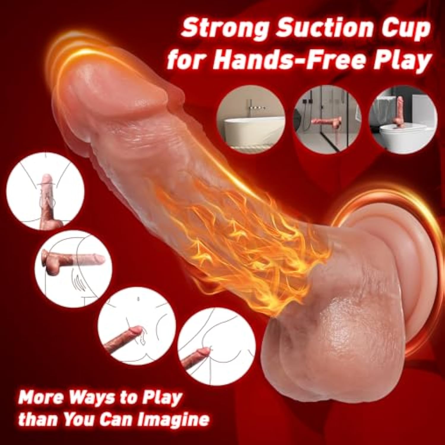 Thrusting Dildo Vibrator Sex Toys, Heating Realistic Dildos For G Spot Anal Stimulation With 7 Thrusting & 9 Vibration Mode, Remote Control Strong Suction Cup, Adult Sex Toys For Woman Couples 8"