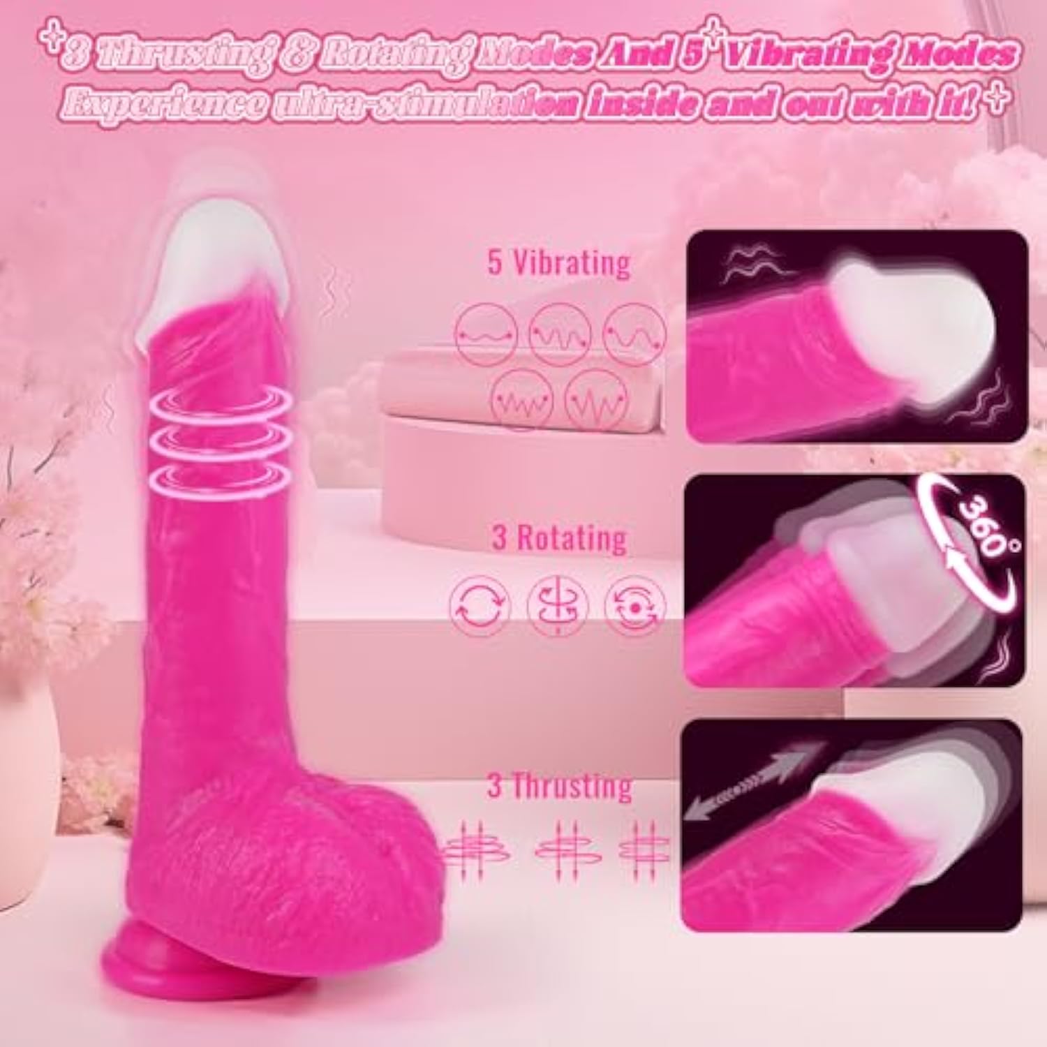 - 3-In-1 Thrusting Dildo - Experience Gentle Power With 7" Of Insertable Length, 1.8" Of Satisfying Girth, And 1.2" Of Rhythmic Thrusting. With A 15° Rotating Curve, It Targets Your G-Spot With Lifelike Precision. Vein Details And A Soft, Rounded Tip Mimic The Real Thing — But Better.