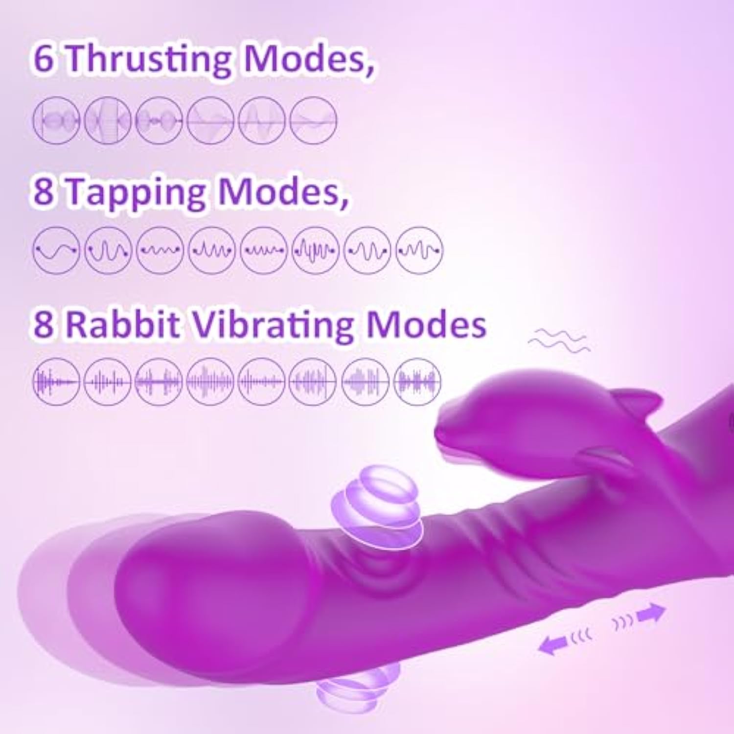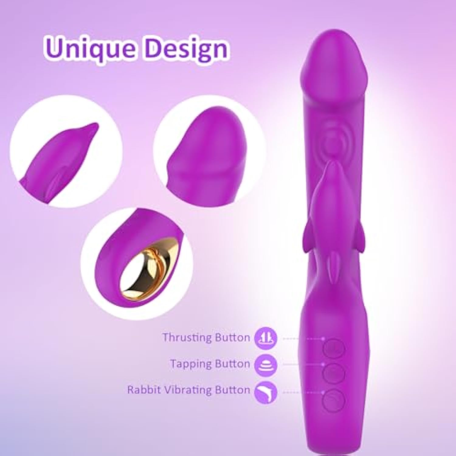 Thrusting Tapping Rabbit Vibrator, Silicone G Spot Clitoral Dildo Vibrator, Triple Stimulation With 8 X 8 X 6 Modes, Waterproof & Rechargeable Adult Sex Toys For Women And Couple (Purple)