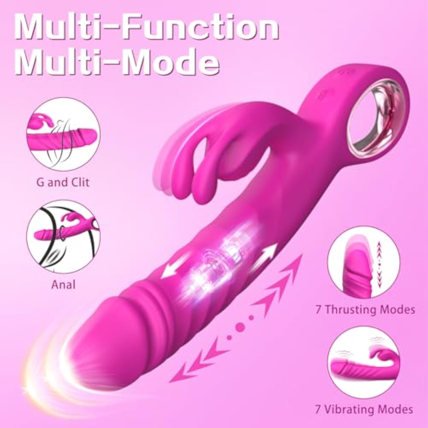 | 3 In 1 Thrusting Vibrator More Stimulation: Adult Toy'S Vibrators Is Designed To Be Realistic Dildo That Is Ideal For Use As Female Vibrator Or Anal Vibrator. With The Vibrator Constantly Thrusting Or Vibrating To Stimulate Sensitive Spots And The Rabbit Ears Constantly Stroking The Clit.The Sex Toy Will Give You Double The Pleasure | | 7 Thrusting And 7 Vibrating Modes: Adult Sex Toys Are Equipped With Two Powerful Tungsten Steel Motors,Make The Thrusting And Vibrating More Strongly. Sure, Softly Or Wildly As You Choose, And Independently Control The Thrusting/Vibrating/Bunny Ears Until You Find The Combination Of Modes That Suits You | | Upgraded Thicker Silicone, O-Ring Design Handle: This Dildo Vibrator Is Made Of Thicker Silicone, Soft And Odourless. The Simulated Texture Stimulates The Sensitive Point For A More Realistic Touch; O-Ring Design Improves The Comfort Of Gripping And Allows You To Use Sex Toys Easily | | Ipx6 Waterproof, Usb Magnetic Charging: This Thrusting Sex Toy Is Easy To Clean, Just Rinse With Water (Do Not Immerse In Water For Long Periods Of Time); Magnetic Charging Is More Comfortable. Vibrator Can Be Used For Up To An Hour On A Full Charge, Make Sure The Charging Hole Is Dry And No Dust Before Charging | | Discreet Packaging And Reliable After-Sales Service: Our Sex Toy Is Packed With Black Gift Box To Protect Your Privacy, Is Gift For Women/Couple. If You Have Any Questions During Use, You Can