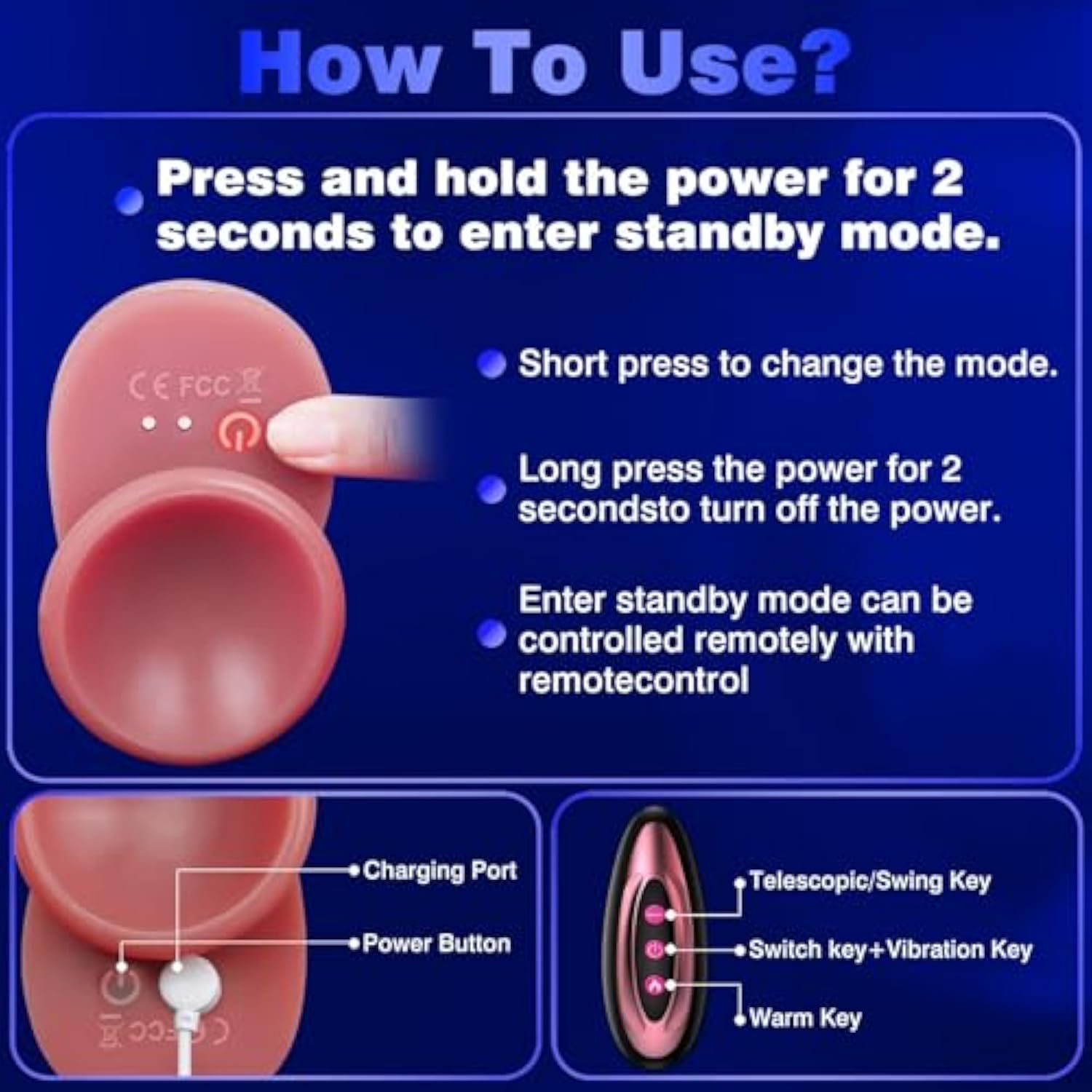 - 7 Frenquencies 8 Vibration Modes Remote Control: The Vibrator Dildo Has 7 Frequencies And 8 Vibration Modes.Different Telescopic And Vibrating Modes With Remote Control Are Convenient To Let You Switch In Different Pleasures Easily