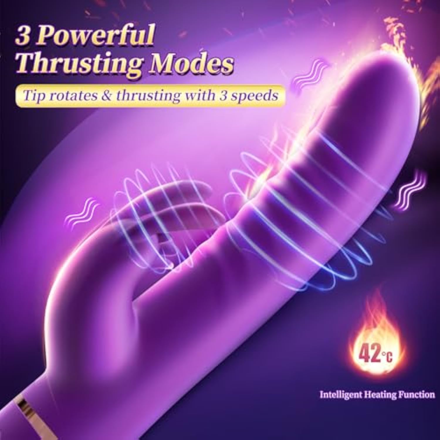 Thrusting Vibrator Dildo Sex Toys For Women - 4 In 1 One Click Burst Rabbit Vibrator With 8 Bunny Flapping 8 Vibrating 3 Thrust Heating Function Clitoral Stimulator G Spot Vibrator Waterproof