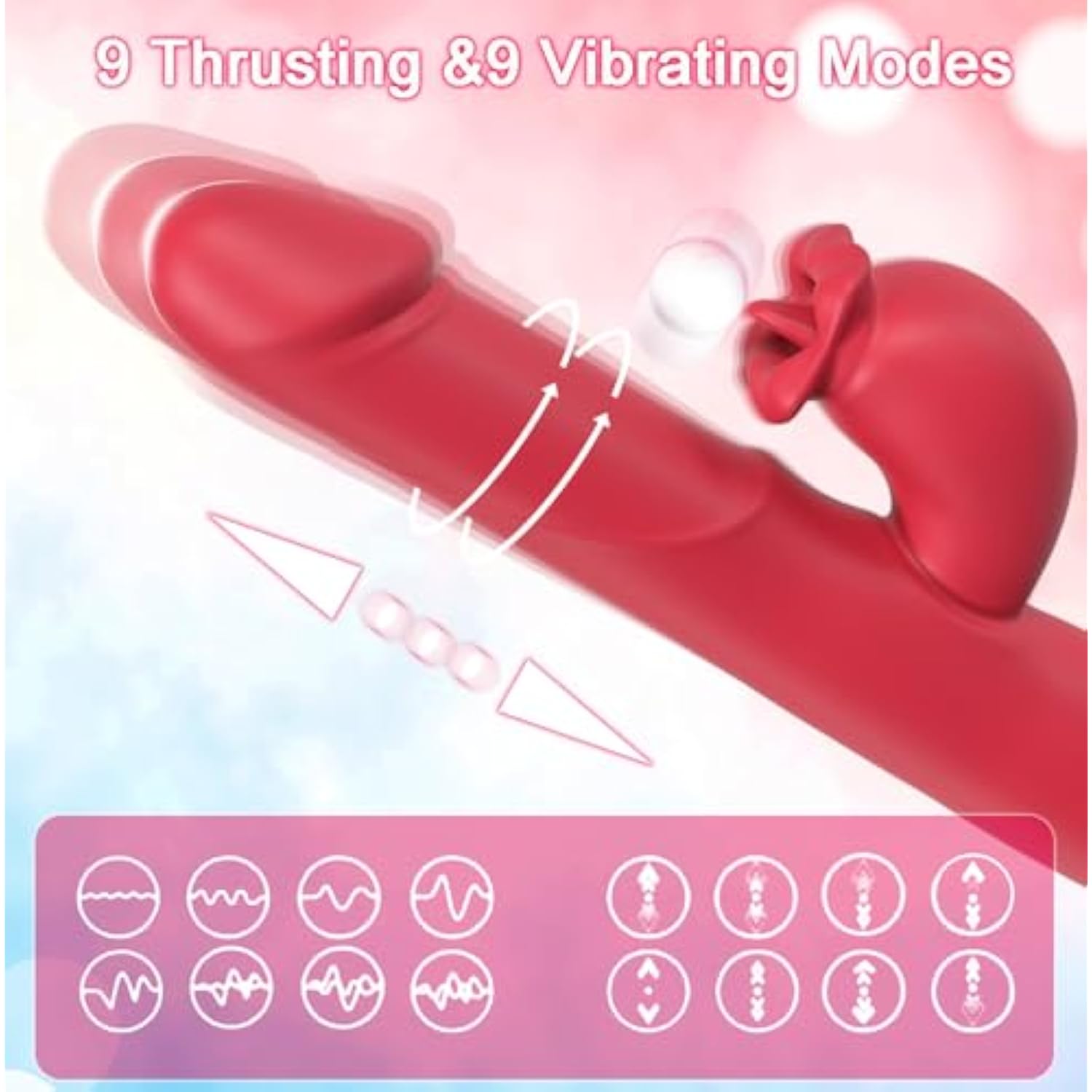 Thrusting Vibrator Sex Toys 4In1 G Spot Vibrator,Tongue Toy For Women Rose Sex Toys With 9 Vibrating& Thrusting& Licking Modes, Dildo For Clitoral Sex Games,Nipple Anal Couples Adult Toys Dildos
