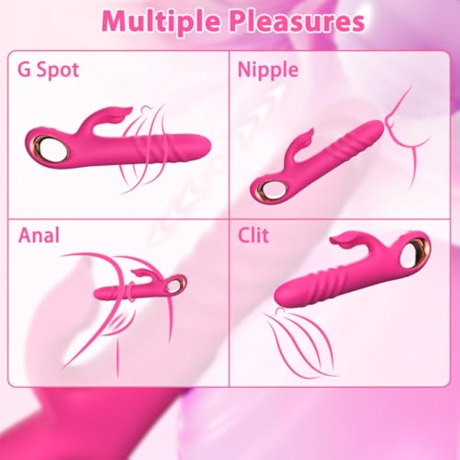 Fast Retraction Vibrating Dildo: Thrusting Dildo Vibrator Is Equipped With 2 Independent Powerful Vibrating Motors, Thrusting Dildo Can Be Controlled Separately, And Fast Thrusting For Your Physical And Mental Pleasure. | | Cute Bunny Ear Design Vibrator: The Dildos Rabbit Ears Stimulate The External Clitoral Area. Our Dildo Is Fairly Quiet, So Secret Play Is Possible. Experience The Thrill Of Double Intercourse With This Vibrator Dildo That Constantly Stimulates The Cascading G Spot And Makes You Bloom Like A Tidal Wave. | | Soft Silicone: Thrusting Dildo Is Made Of Premium, Body-Safe Soft Silicone. The Dildo Boasts An Incredibly Supple, Velvety-Smooth Touch That Feels Gentle And Luxurious Against The Skin. Completely Odorless And Non-Irritating, This Dildo Skin-Friendly Material Is Specifi