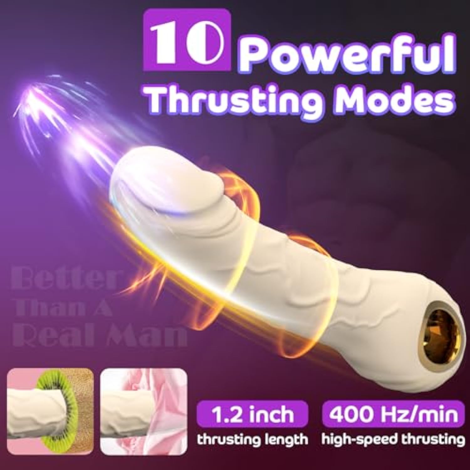 - ???Why Choose Our Thrusting Sex Toy-The Motor?. Its 10 Thrusting Speeds Stand Out From The Competition And Give You An Excellent Range Of Settings To Explore. The Self-Propelling Vibrator Has An Impressive 1.2? Thrusting Length, Up To 400 Times Deep Fast And Flexible Thrusts Per Minute. Our Vibrator Is Also Equipped With 10 Vibration Modes, All Strong But Totally Different Rhythm. All These Tons Of Patterns Are Supported By Our New Upgraded Motor, To Bring You No Stagnation Fun.