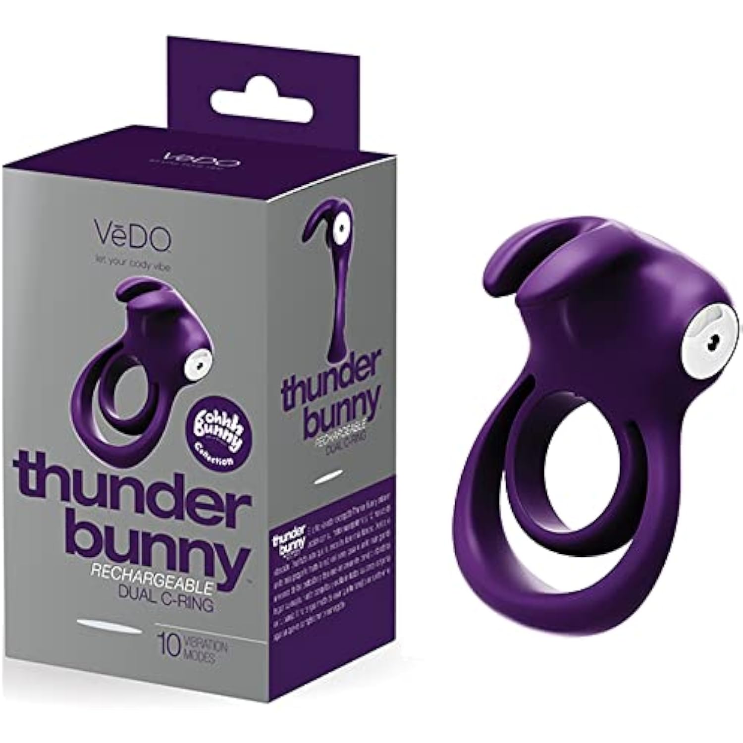 Thunder Bunny Vibrator, Rechargeable Vibrating Couples Double C-Ring, Clitoral Stimulation, 10 Vibration Mode Adult Sex Toy (Purple)