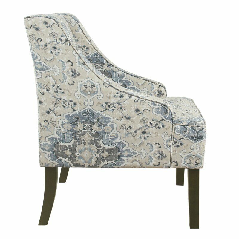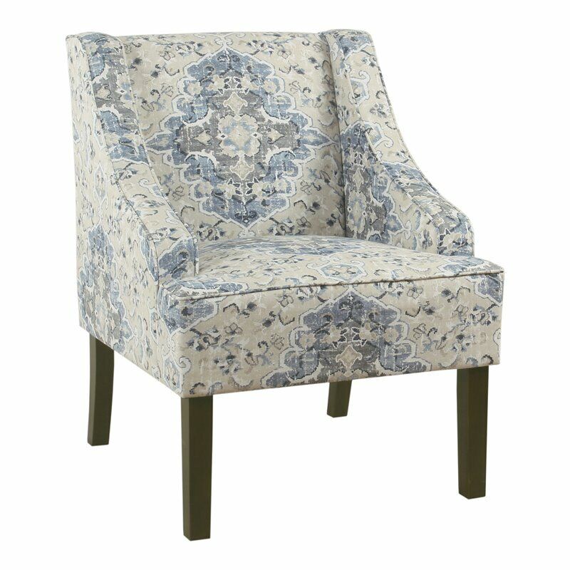 Traditional Fabric Swoop Arm Accent Chair In Antiqued Blue