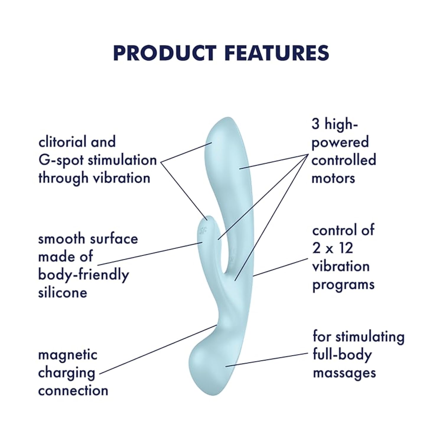 Verstile Stimulation - Triple Oh Offers You Maximum Versatility With 3 Motors And 2 Separately Controllable Functions. That Pampers Both The Clitoris And The G-Spot With Vibrations And Stimulating Massages. | | 144 Vibration Combinations - The 2 Independently Controllable Motors Come With 12 Vibration Programs Each, Giving You A Total Of 144 Possible Combinations. | | Stimulating Full-Body Massage - The Massage Head Of Triple Oh Features A Pointed Tip, Allowing For Targeted Or Large-Area Massages Depending On Your Desires. Reaching Every Part Of The Body Craving Relaxation. | | Body-Friendly Silicone - The Triple Oh Is Made With Body-Friendly Silicone, Making It Soft To The Touch For Added Comfort And Easy Cleaning. | | Waterproof - The Triple Oh Is Ipx7 Waterproof Rated, Inviting You To Enjoy Sensual Pleasure In The Shower Or Bath. It'S Protected Against Immersion In Water Up To 1 Meter Deep For Up To 30 Minutes Of Use. | |