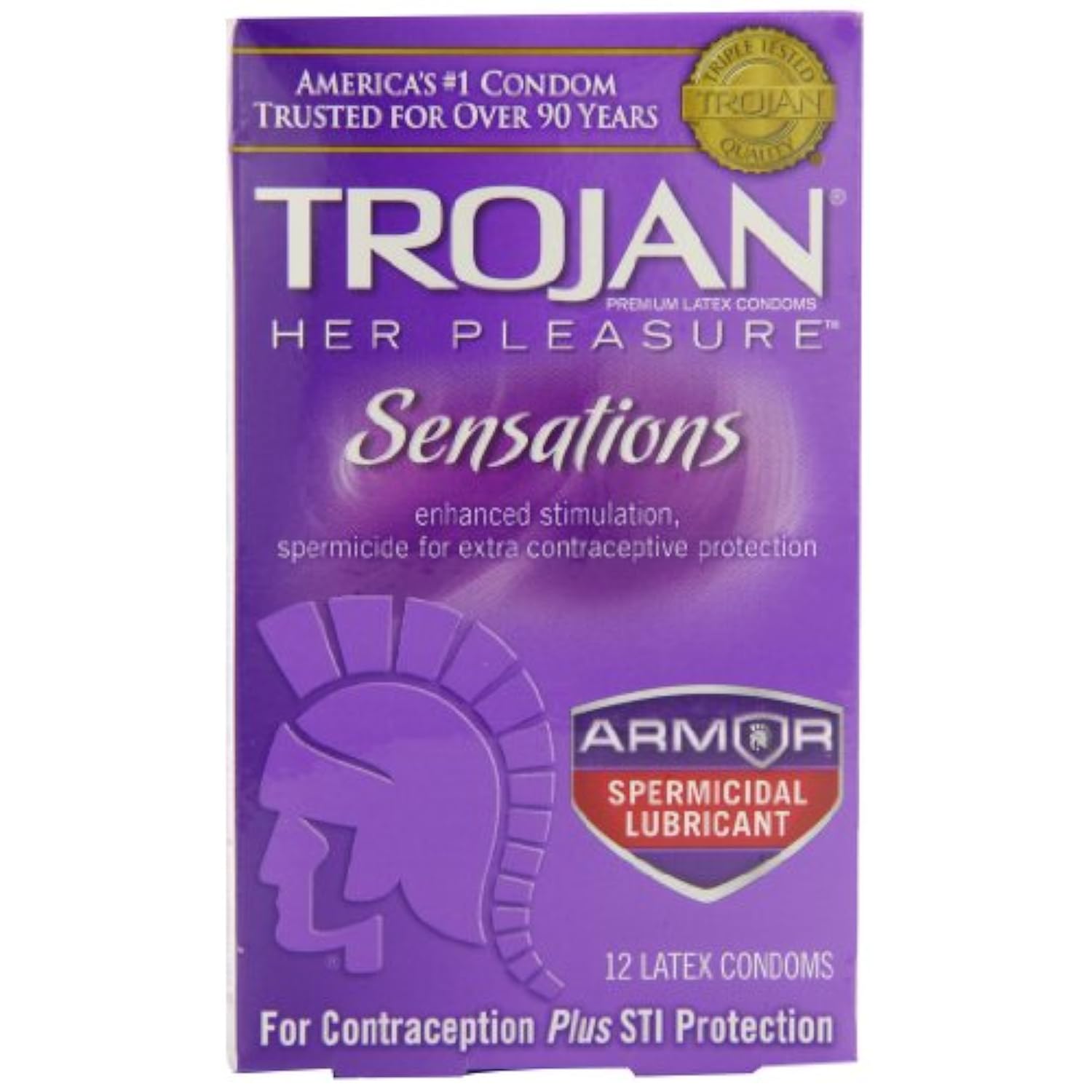 Trojan Her Pleasure Sensations Spermicidal Lubricated Condoms, 12ct (Pack of 4)