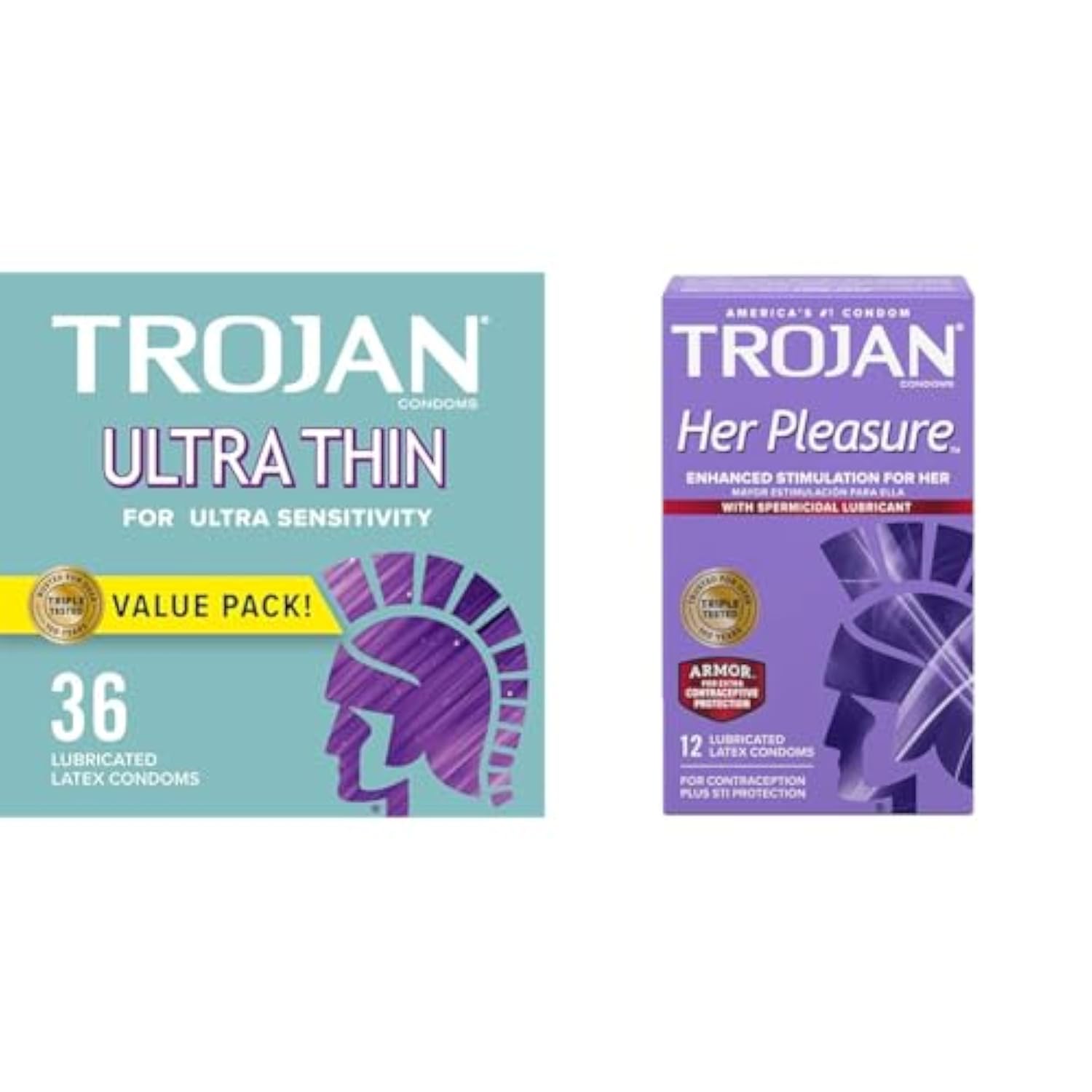 TROJAN Ultra Thin 36 Count Condoms and TROJAN Her Pleasure Sensations 12 Count Spermicidal Lubricated Condoms