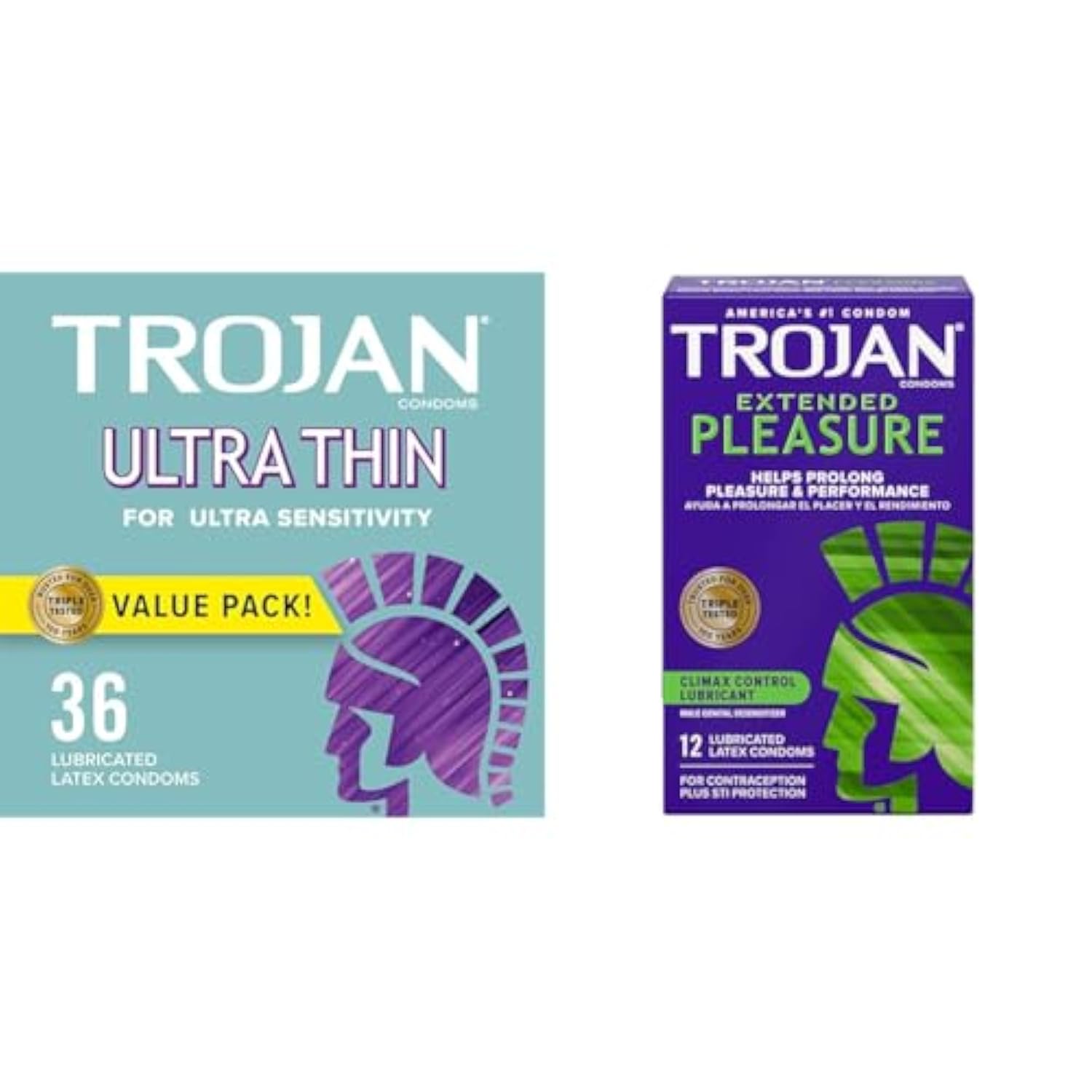 TROJAN Ultra Thin Condoms for Ultra Sensitivity, Lubricated Condoms for Men, America’s Number One Condom, 36 Count Value Pack & Extended Pleasure Climax Control Extended Pleasure Condoms, 12 Count