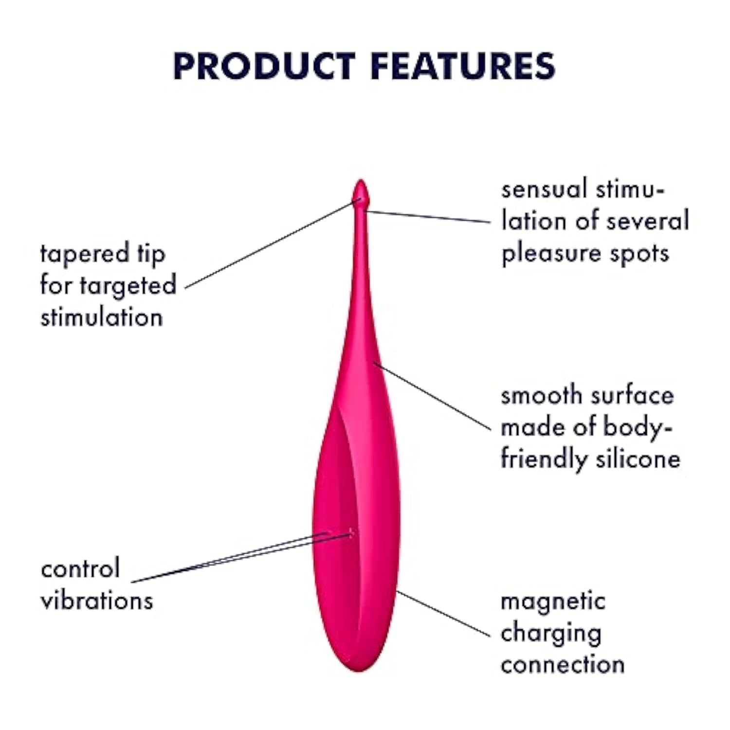 Circulating Stimulation Tip - With Its Circulating, Tapered Tip And Powerful Vibrations, The Twirling Fun Is The Perfect Device To Provide Targeted Stimulation To Any And All Erogenous Zones. | | 12 Vibration Settings - Made Up Of 5 Intensity Levels And 7 Rhythms, Twirling Fun'S 12 Vibration Programs, Ranging From Delicate To Intense, Can Be Easily Controlled Using The Intuitive + And - Buttons. | | Great For Beginners - Thanks To Its Sporty Design, Diversity And Ease Of Use, The Twirling Fun Tip Vibrator Is Perfect For Beginners. | | Body-Friendly Silicone - The Twirling Fin Is Made With Body-Friendly Silicone, Making It Soft To The Touch For Added Comfort And Easy Cleaning. | | Waterproof - The Twirling Fun Is Ipx7 Waterproof Rated, Inviting You To Enjoy Sensual Pleasure In The Shower Or Bath. It'S Protected Against Immersion In Water Up To 1 Meter Deep For Up To 30 Minutes Of Use. | |