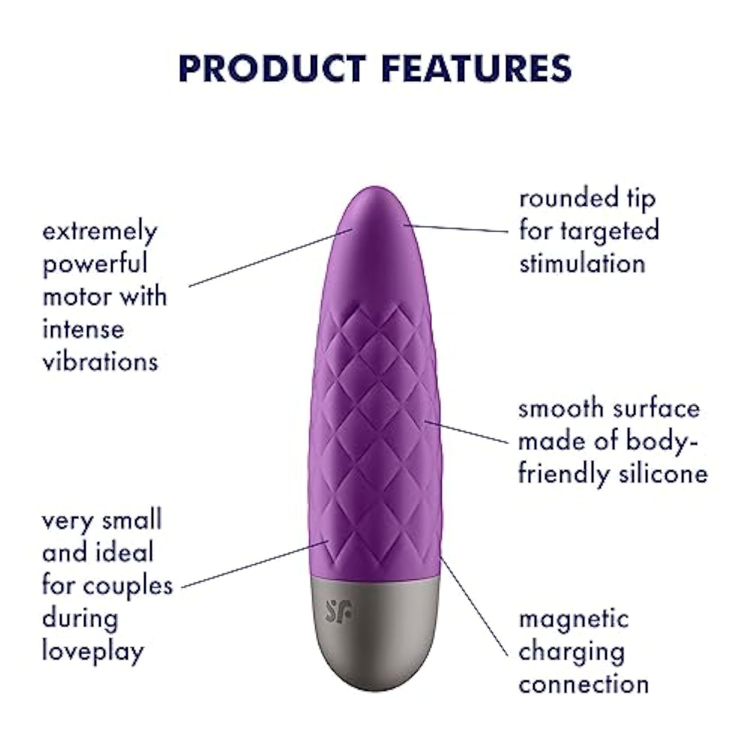 Unforgettable: Experience Versatile Pleasure With Its Rounded Tip For Precise, Intense Clitoral Stimulation. Want More Use The Voluminous, Quilted Surface To Tease Larger Erogenous Zones. | | Quality: Being A German Company With A Worldwide Reputation As A Sex Shop, We Place Great Emphasis On Ensuring Quality And Safety. | | Features: Get Ready To Be Swept Away By 12 Seductive Programs, Featuring 5 Speeds And 7 Thrilling Vibration Patterns That Will Ignite Your Desires And Keep The Excitement Building. | | Practical: With Its Compact Size And Simple One-Touch Operation, The Ultra Power Bullet 5 Is Perfect For Beginners Looking To Explore New Sensations With Ease. | | Material: Ultra Power Bullet 5 Features A Skin-Friendly Silicone Material That Ensures It Is Gentle And Non-Irritating To The Skin, Delivering A Soft And Comfortable Experience. | |