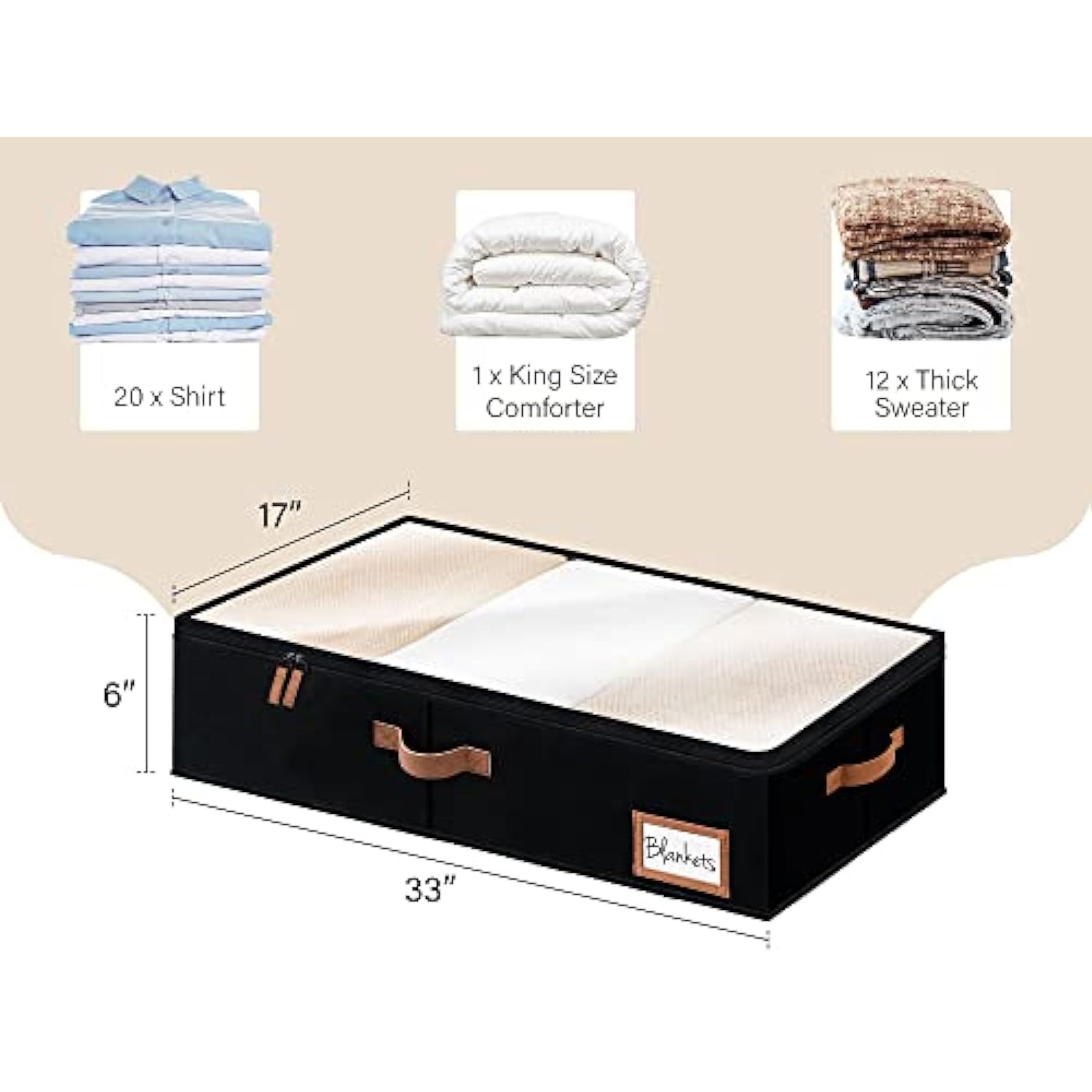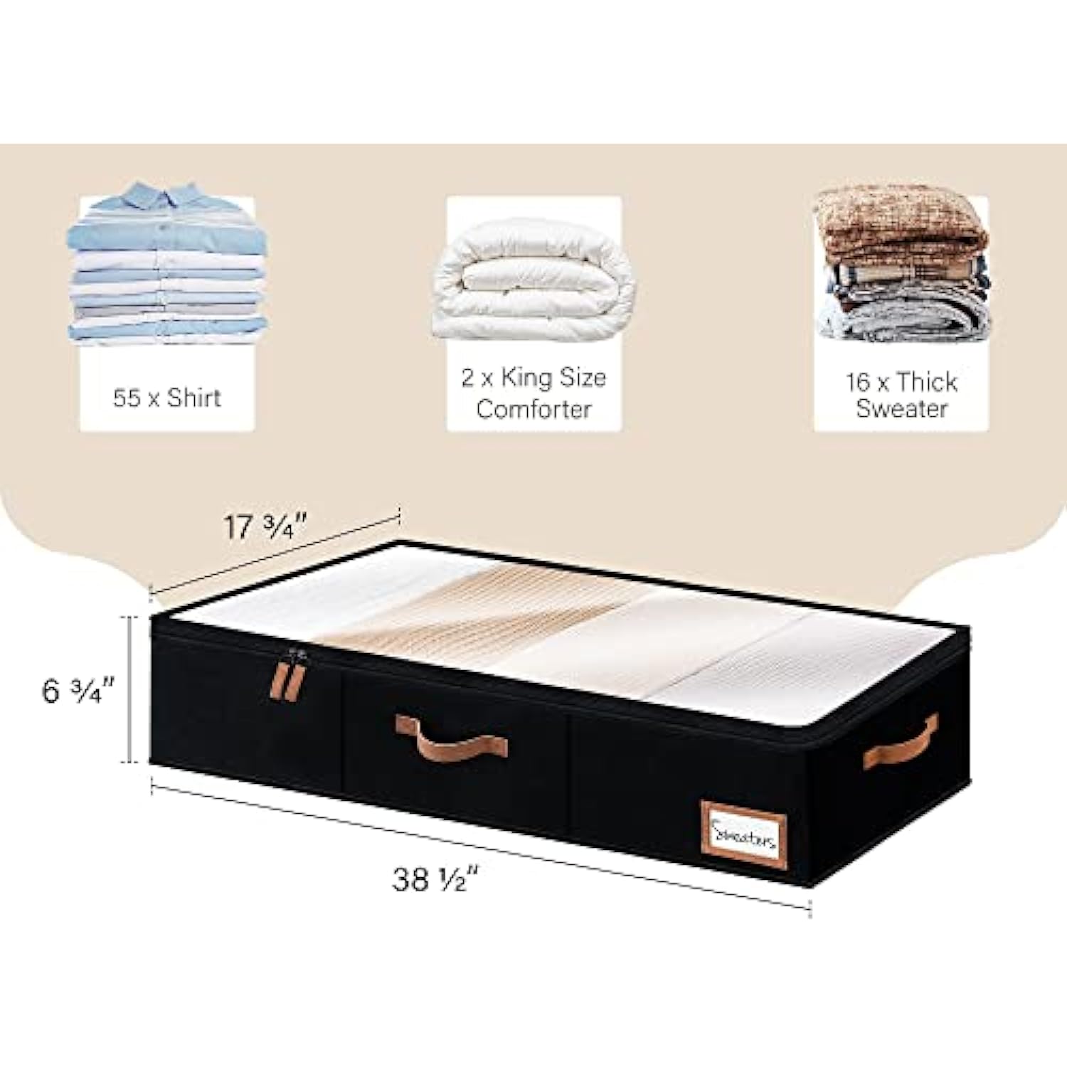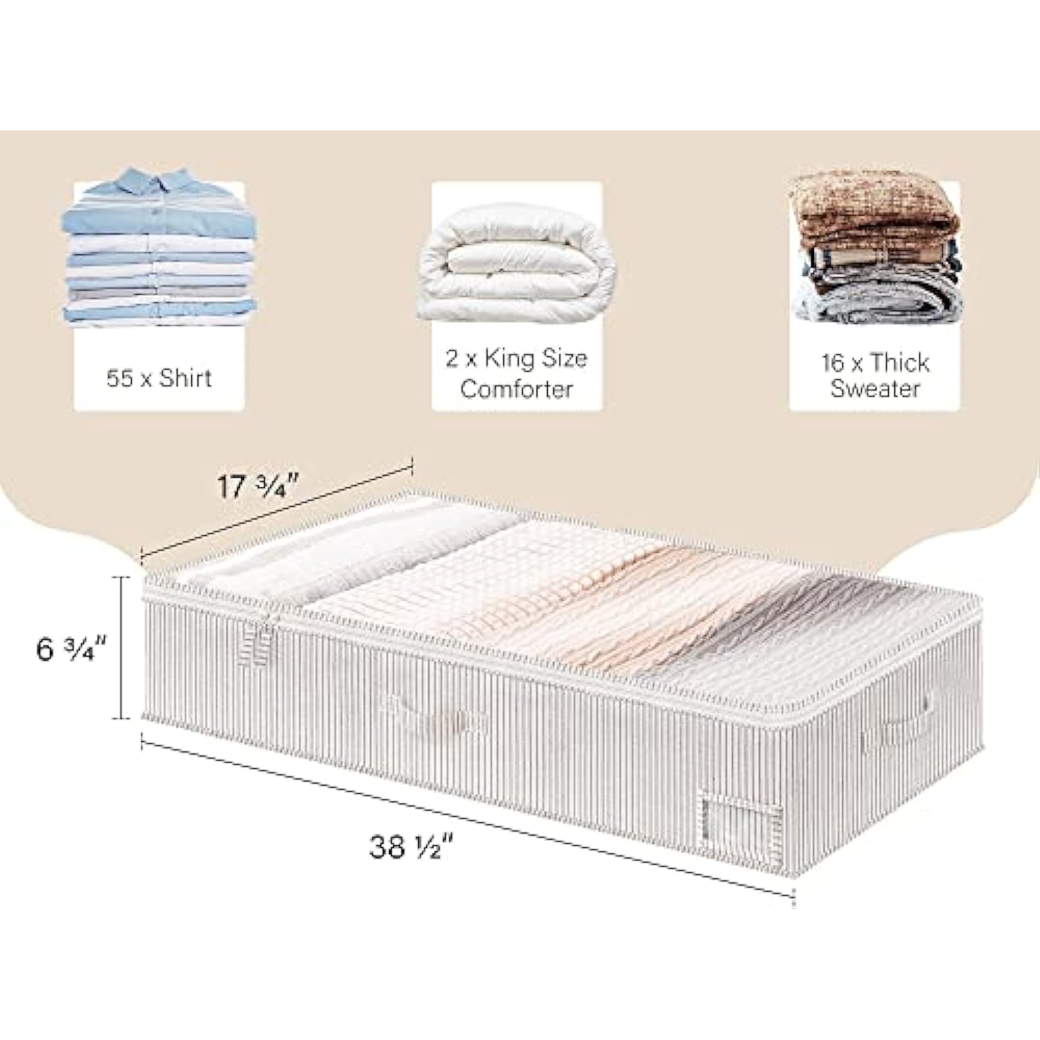 - Clothes organizer for underbed storage ideal for storing out-of-season clothes, shoes, blankets, sweaters, accessories, toys, DVDs, and more in the closets, coatrooms, bedrooms, nurseries, attics, basements, or under cribs at home or in a dorm.