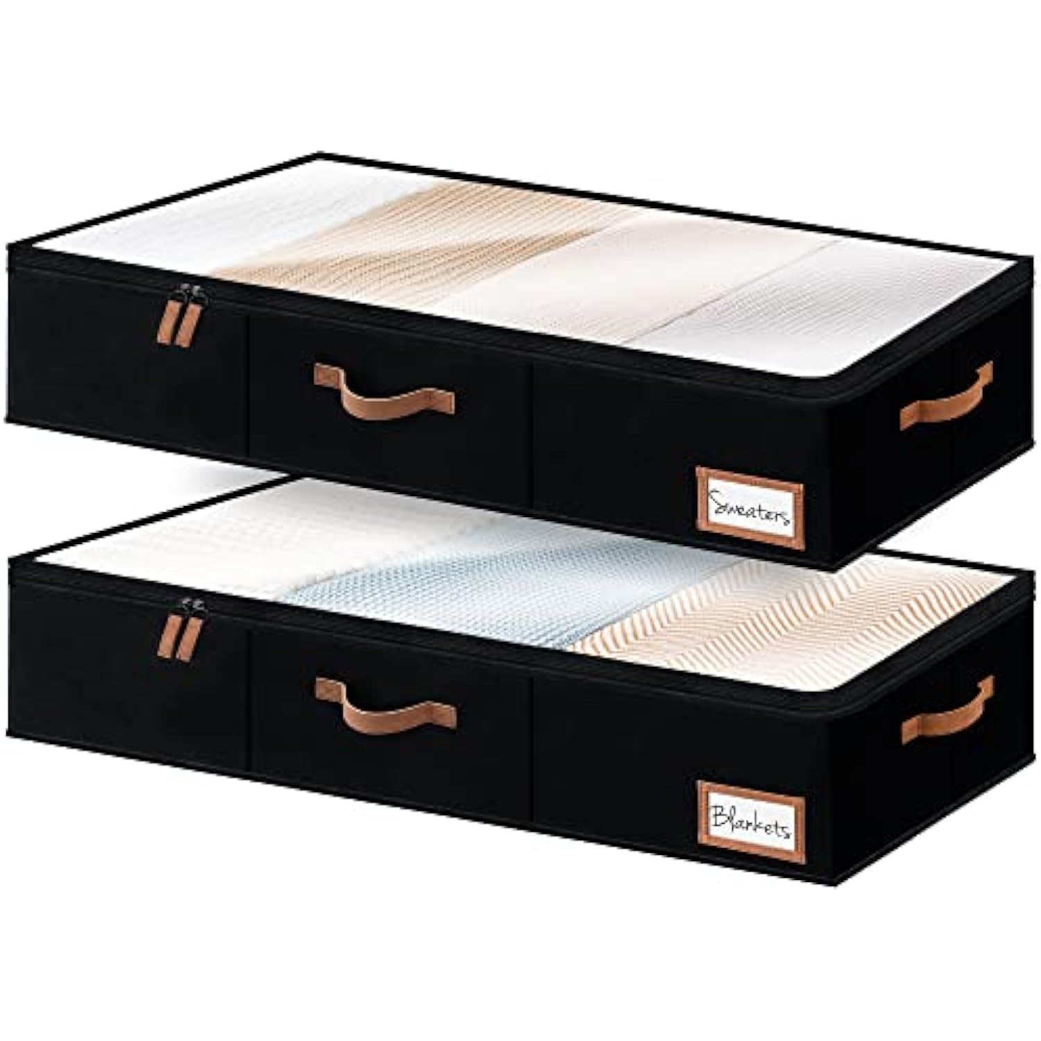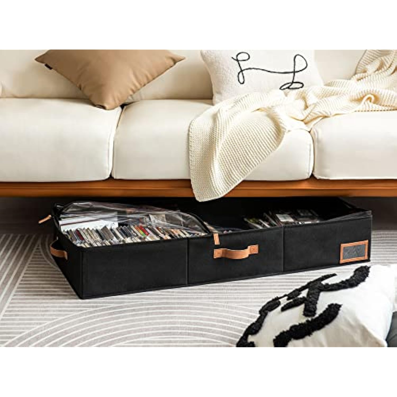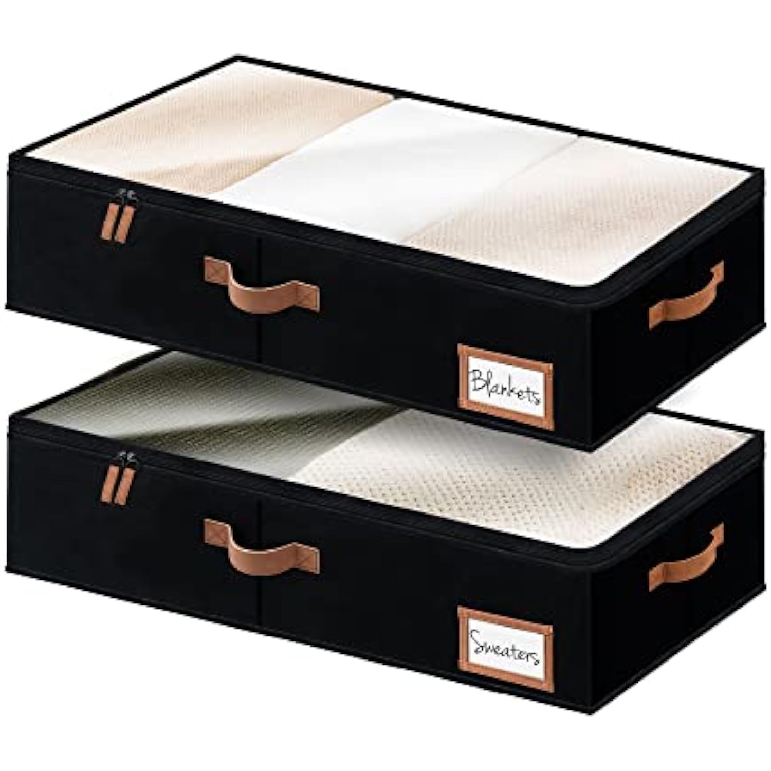 - Underbed storage organizers feature a big transparent lid and a label holder.