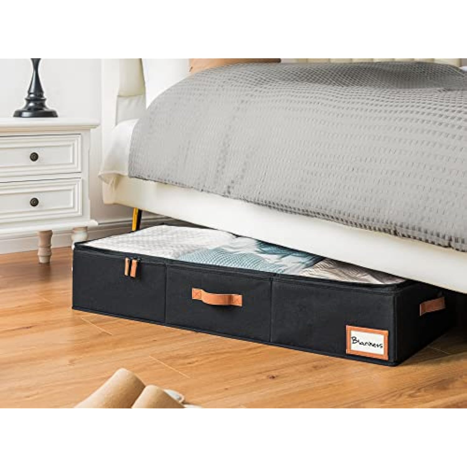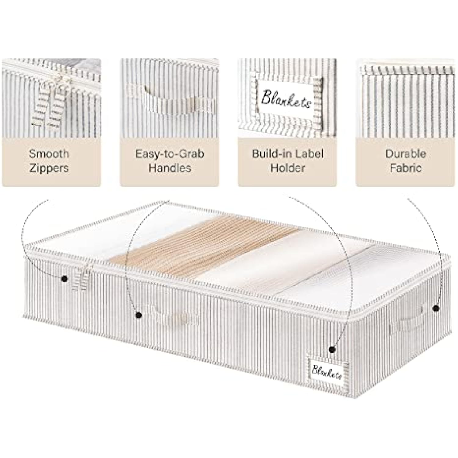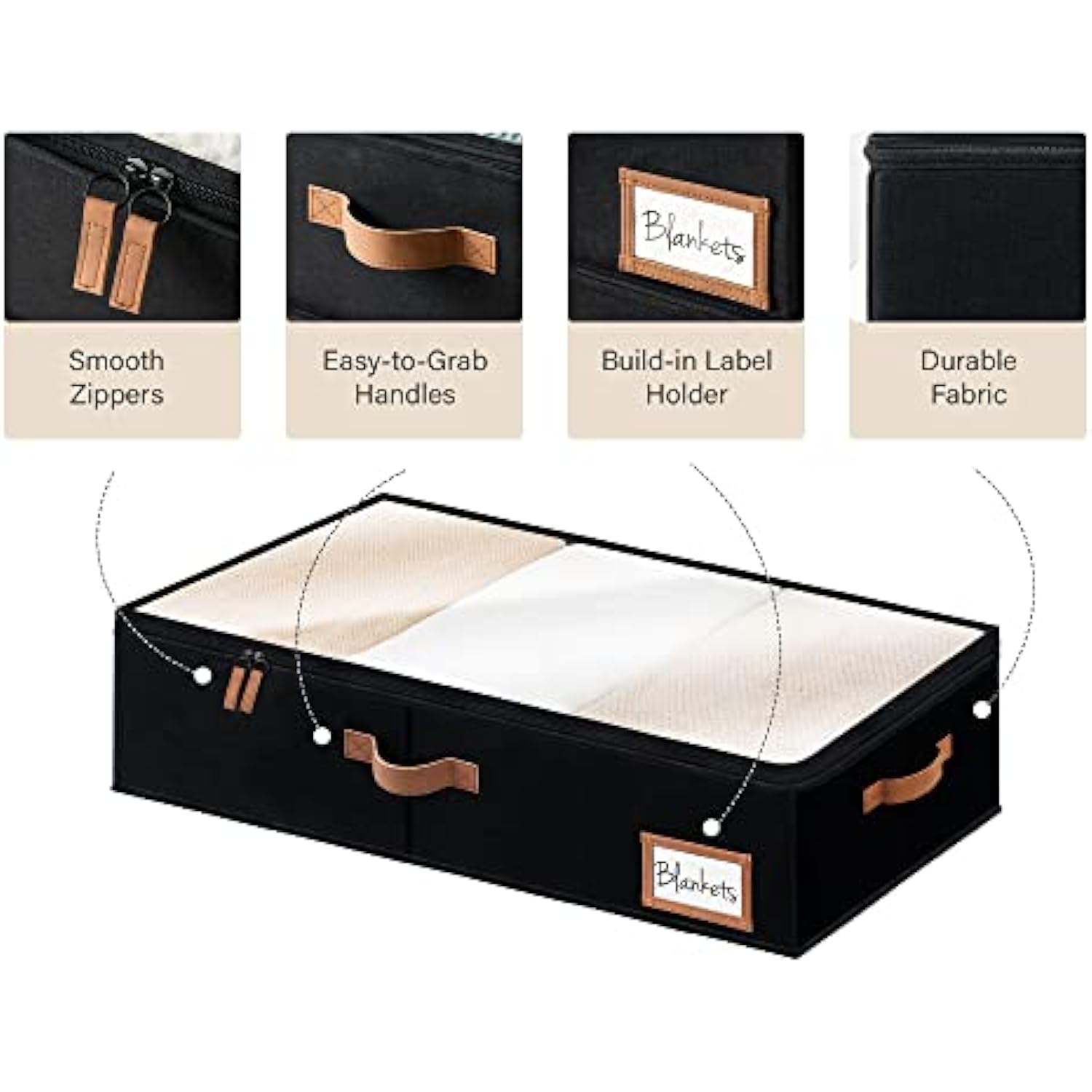 - Dust-proof underbed storage boxes with double zippers make for smooth open and close.