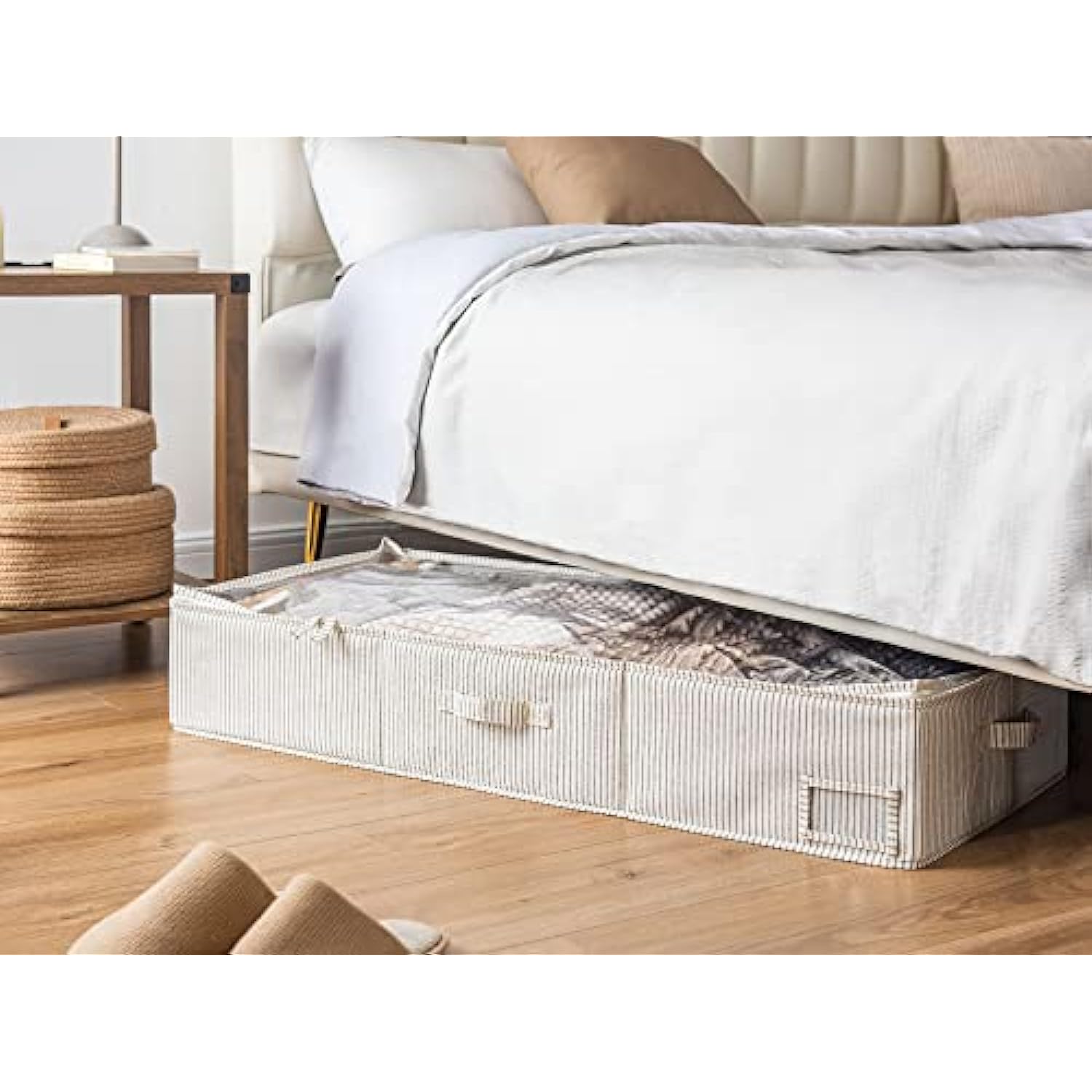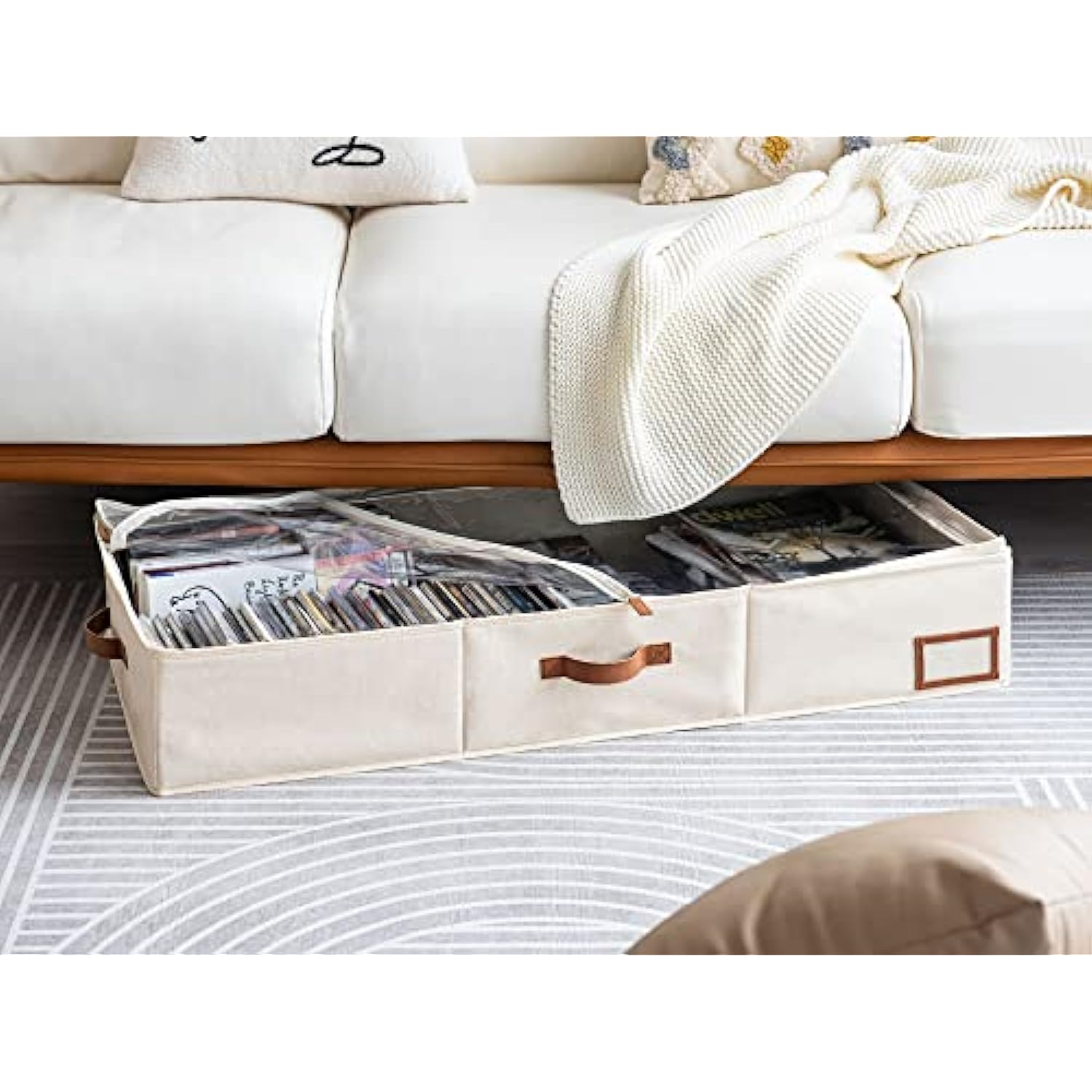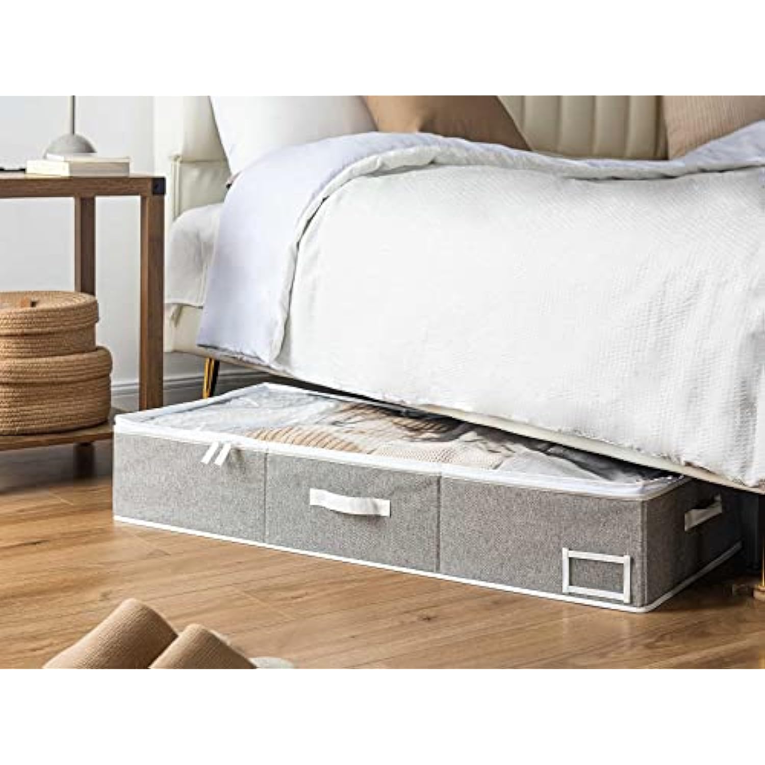 - Dust-proof underbed storage boxes with double zippers make for smooth open and close.