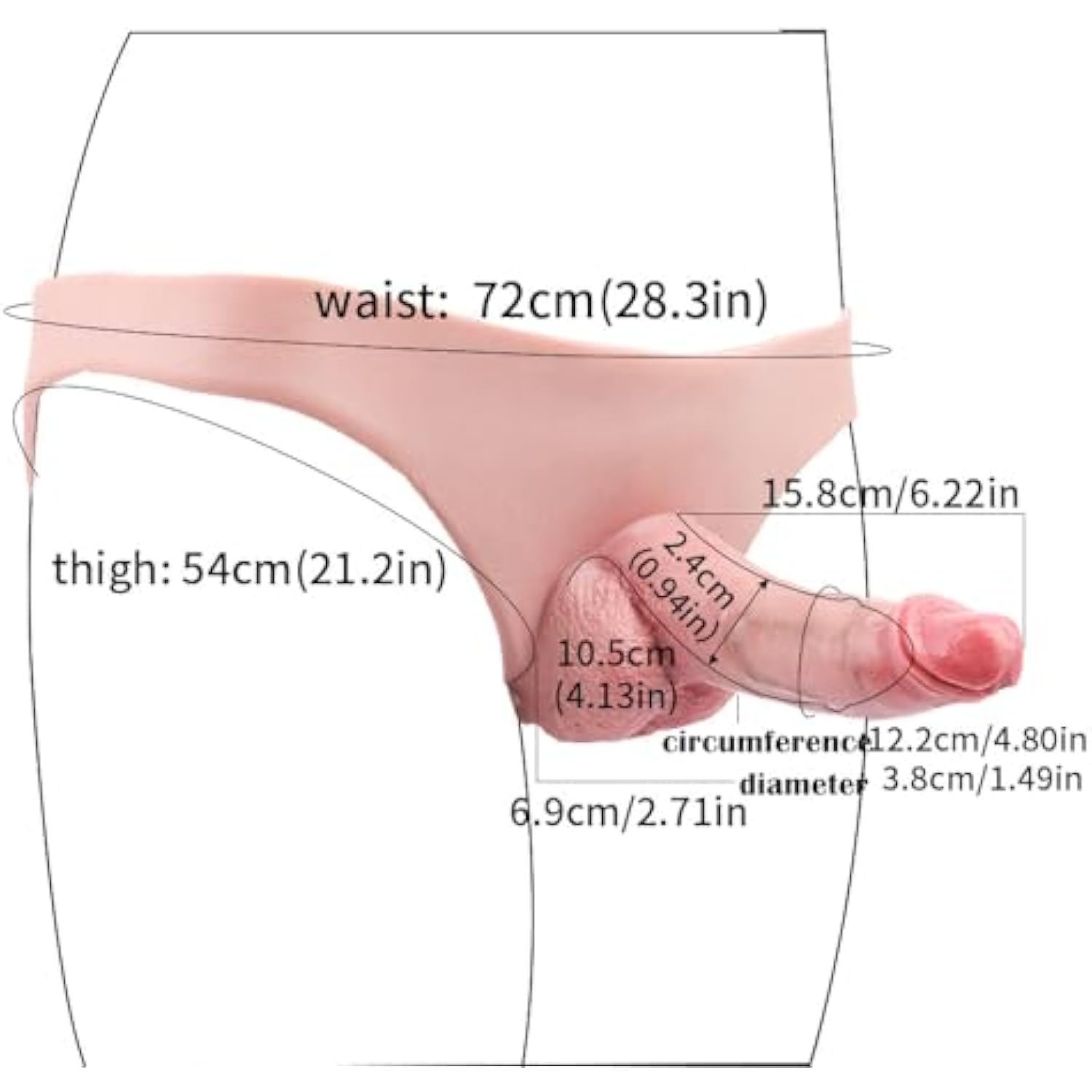 - About The Size: Medium Size Wearable Dildo Panties, With 15.8Cm/6.22" Dildo.Waist Circumference: 38.1Cm-87.4Cm/ 15"-34.4".Thigh Circumference: 28.8-64.4Cm/11.33"-23.35".