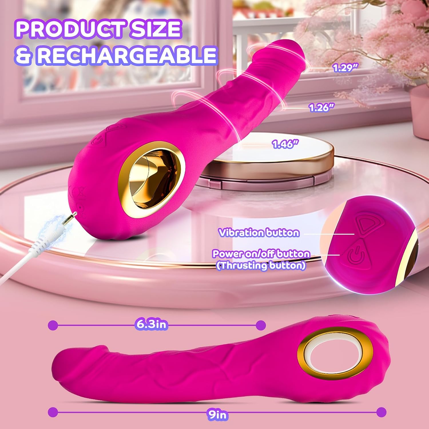 Upgraded 9" Thrusting G-Spot Vibrator – 10 Vibration & Thrusting Modes, Hot Pink