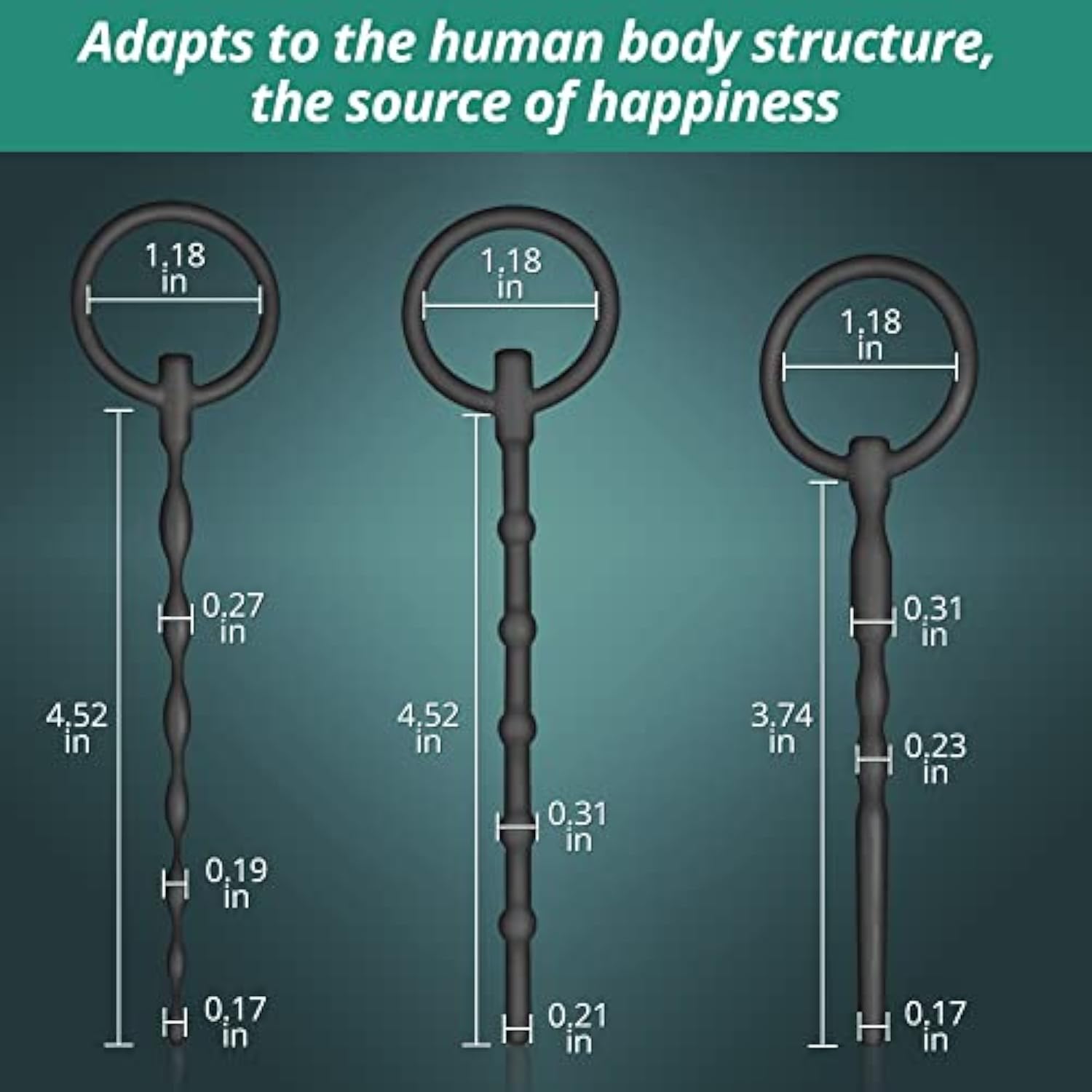| 3 Pieces Of Urethral Sounds - This Urethral Sounds Set Has Three Pieces, Three Different Sizes, Namely Small, Medium, And Large , Which Can Meet Your Different Levels Of Sex Requirements, Whether You Are A Beginner Or An Expert | | Size Of Urethral Dilator - The Small Length Is 3.74” And The Maximum Diameter Is 0.31”, Suitable For Beginners. The Medium Length Is 4.52” And The Maximum Diameter Is 0.27”. The Large Length Is 4.52” And The Maximum Diameter Is 0.31”, Suitable For Experts | | Ergonomic Design - The Insertion End Of The Penis Plug Is A Tapered Bead Design, So It Can Not Only Slide In Easily, But Also Prevent Pain Or Injury During Insertion. The Hand-Held End Is The O-Ring. The O-Ring Is Easy To Hold, Which Is Convenient For You To Operate And Prevents Over-Insertion | | Multi Beads Urethral - The Rod Of The Silicone Urethral Sound Is Designed With Multi-Beads.When You Use The Sound Of The Urethra To Insert Your Penis, The Beads Will Stimulate Your Sensitive Nerves Along With Your Operation, Rub Your Prostate, And Bring You A Spouting Orgasm | | Silicone Penis Plugs - Our Urethral Dilators Are Made Of Soft, Flexible, Hypoallergenic Silicone To Ensure The Safety And Comfort Of Your Sex Journey. Let The Ergonomic Urethral Rods Insert Into Your Penis, Fill Your Emptiness, And Lead You To Find Fatal Happiness | |