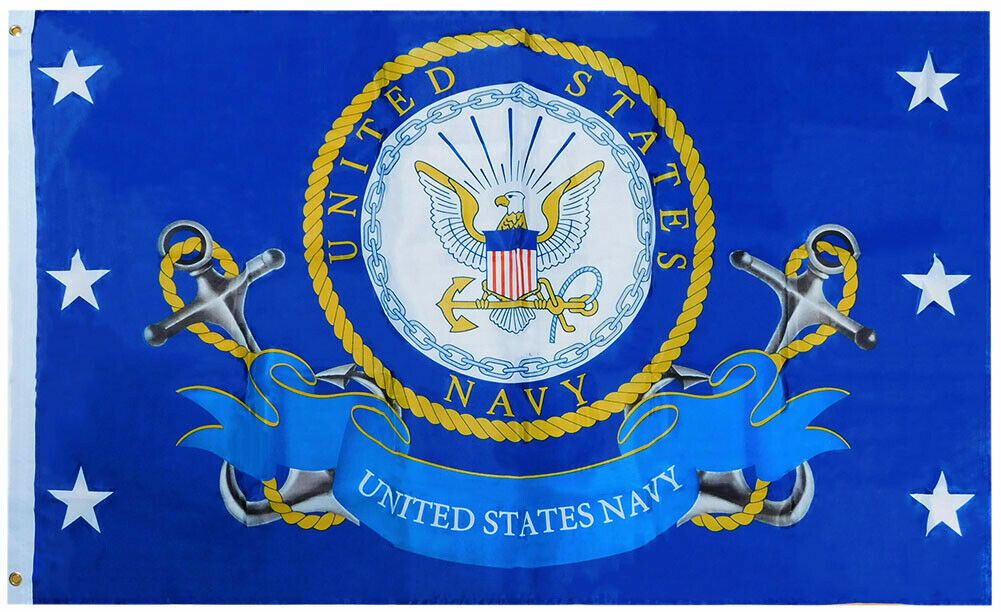 Usn Anchors United States Navy Emblem 150D Woven Poly Nylon 3X5 3'X5' Flag