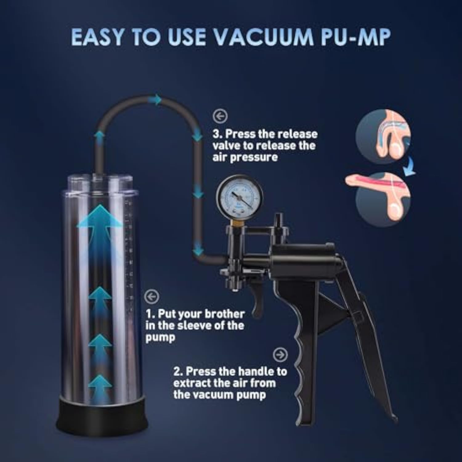 | Physiotherapy And Natural Therapy Penis Pump - The Negative Pressure Generated Inside The Masturbator Promotes Blood Circulation In The Penis And Dilates The Blood Vessels In The Cavernous Body, Thereby Making The Penis Lengthen, Enlarge And Harden. The Vacuum Physical Erection Penis Pump Is A Very Safe And Effective Method For Male Penis Erection Training. | | 3D Visible Design Realistic Vagina Sleeve - The Clear Tube Of The Penis Erection Training Pump Is Designed With A Clear Scale, So You Can Clearly See The Constant Changes Of Your Penis While Using It. It Also Comes With A Realistic Soft Vaginal Sleeve That Can Be Used With The Penis Pump For More Fun. | | Manually Adjustable Penis Pump - The Sex Toy Is Equipped With A Vacuum Gauge, You Can Adjust The Negative Pressure At Any Time According To Your Comfort Level, Press The Handle, And Clearly See The Negative Pressure Value And Negative Pressure Change On The Dial Of The Sexual Appliance. One-Touch Release Valve Ensures Safety And Comfort. | | Detachable Design Penis Enlargement Pump - The Hose Of The Penis Enlargement Pump Is Not Easy To Break, And Its Sides Can Be Disassembled And Cut As Needed. In Addition, The Cylinder Can Also Be Disassembled And Stored In A Black Storage Bag. | | Discreet Packaging - We Will Deliver It To You In Discreet Packaging That Does Not Contain Any Sensitive Information. It'S Lightweight And Detachable, So You Can Take It With You And Start Your Exciting Journey Anytime! | |