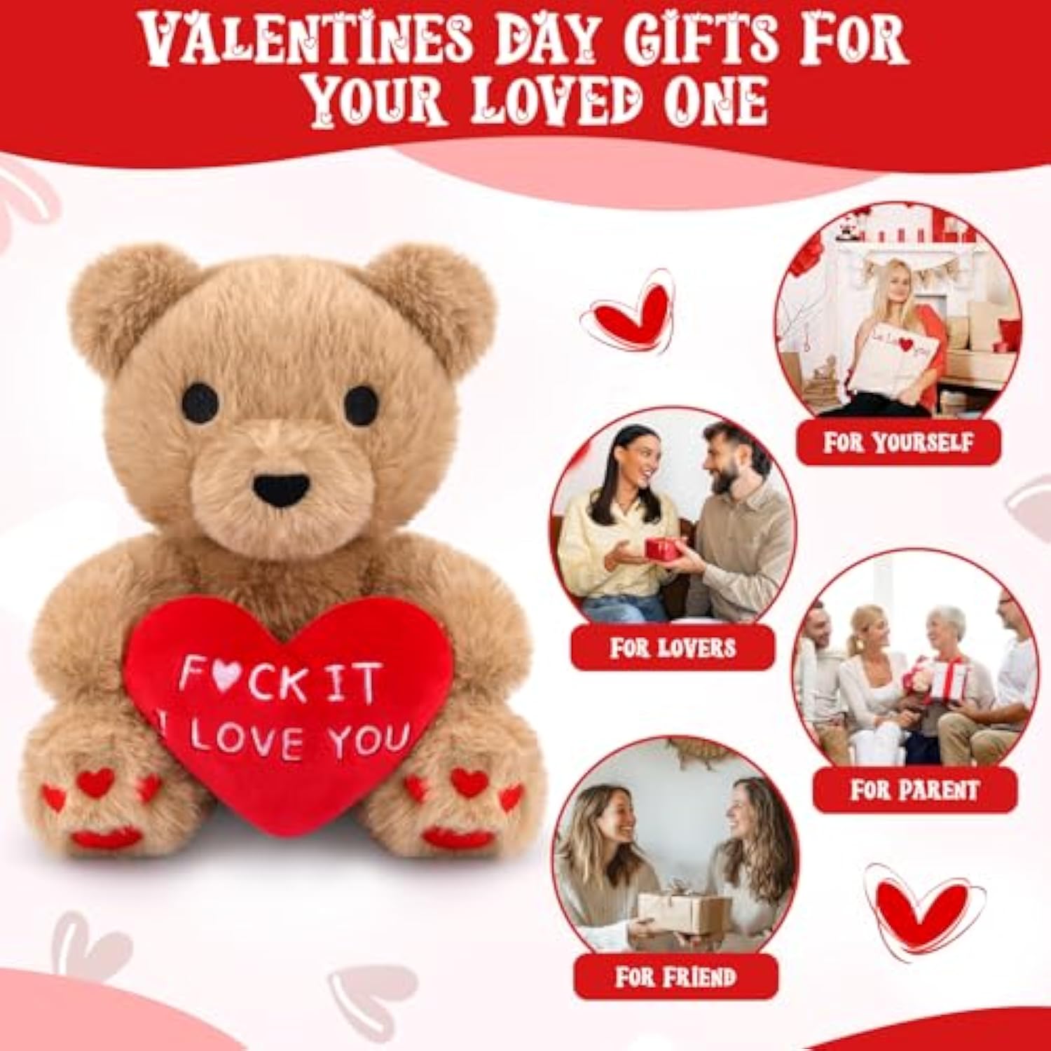Valentines Teddy Bear Stuffed Animal,Cute Teddy Bear Plush With Red Heart,Soft Hugging Valentines Day Plush Toy Gifts For Girlfriend Boyfriend Women Men