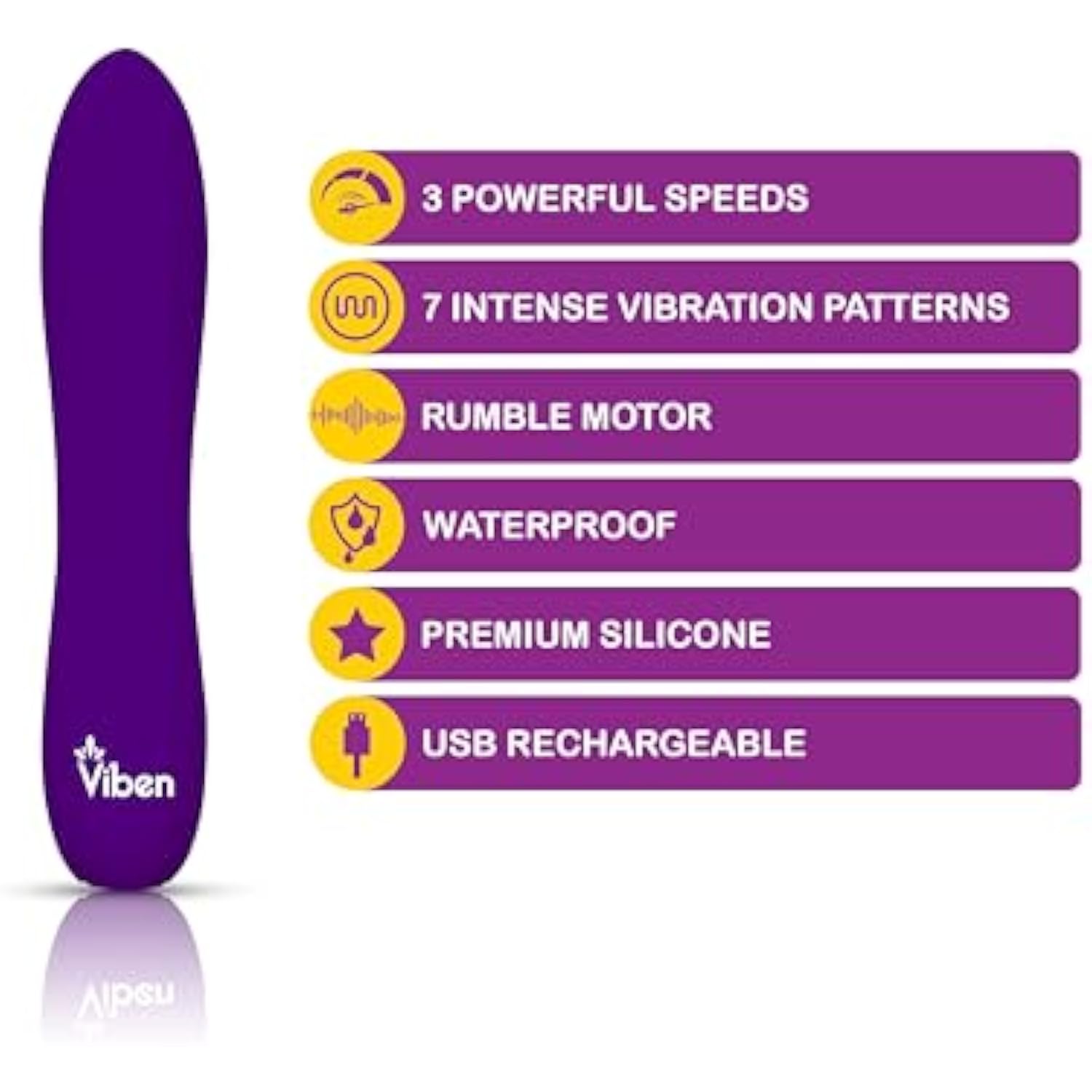 Viben Vivacious Bullet Vibrator | 10 Function Power Bullet | Premium Silicone Rumble Motor | USB Rechargeable Waterproof Adult Toys | Violet