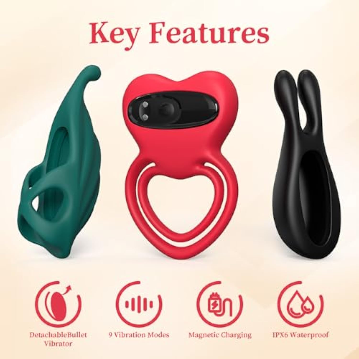 Vibrating Cock Ring, Couples Sex Toys, Clitoral G Spot Nipples Stimulator, Finger Vibrator With Mini Bullet, Waterproof 9 Vibration Modes, Rose Adult Sex Toy For Man And Women
