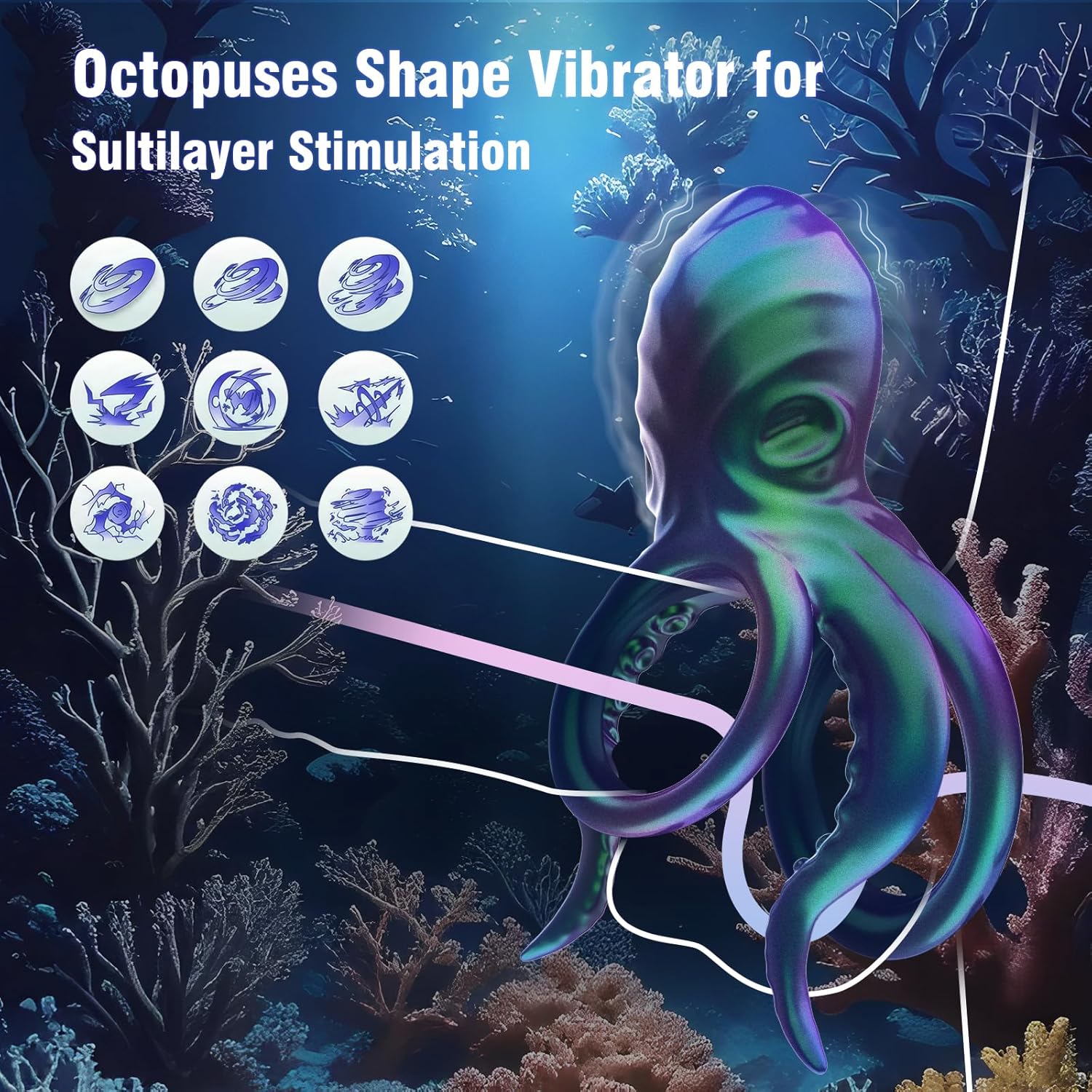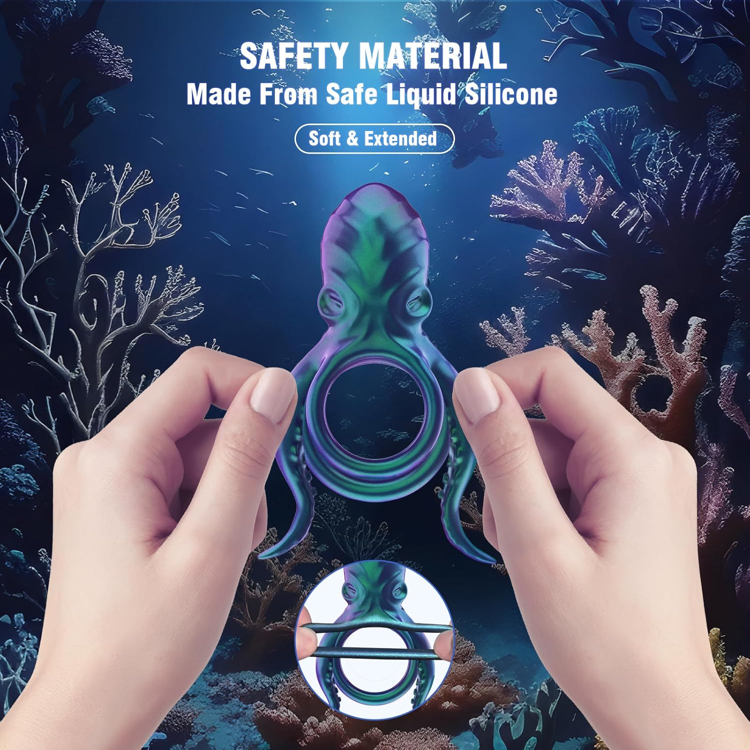 Featuring a double ring design and strong vibrating tentacles, this device helps prolong performance and offers added pleasure to the testicles. The vibrating tentacles and octopus head work together to enhance sensations for both partners.