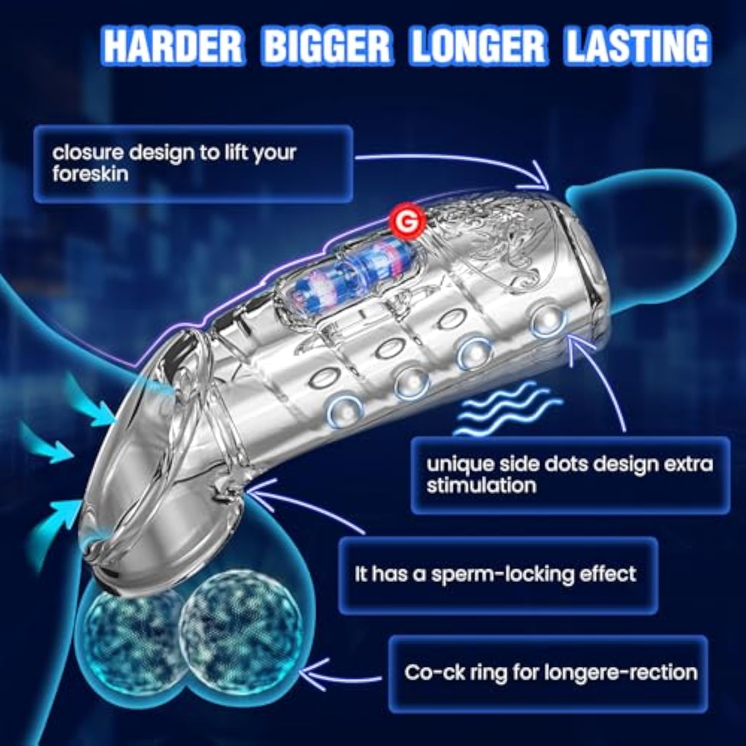 - ?Enlargement Vibration?Enhanced Vibrating Penis Sleeve Has Vibration Modes, Offering Penis And G-Spot/Anal Stimulation. It Enhances Penis Girth And Supports Stronger Erections, Bringing Simultaneous Pleasure And Satisfaction To Couple Play