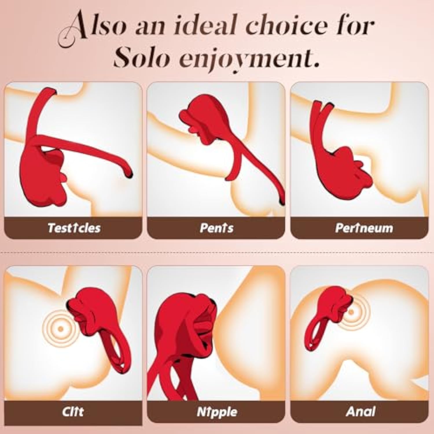 Vibrating Cock Ring Sex Toys - 3-In-1 Penis Ring Vibrator Clitoral Stimulator With Tongue Licking, 7 Modes Adult Couples Sex Toys For Men And Women, Rose Sex Toy Vibrators For Anal Nipple